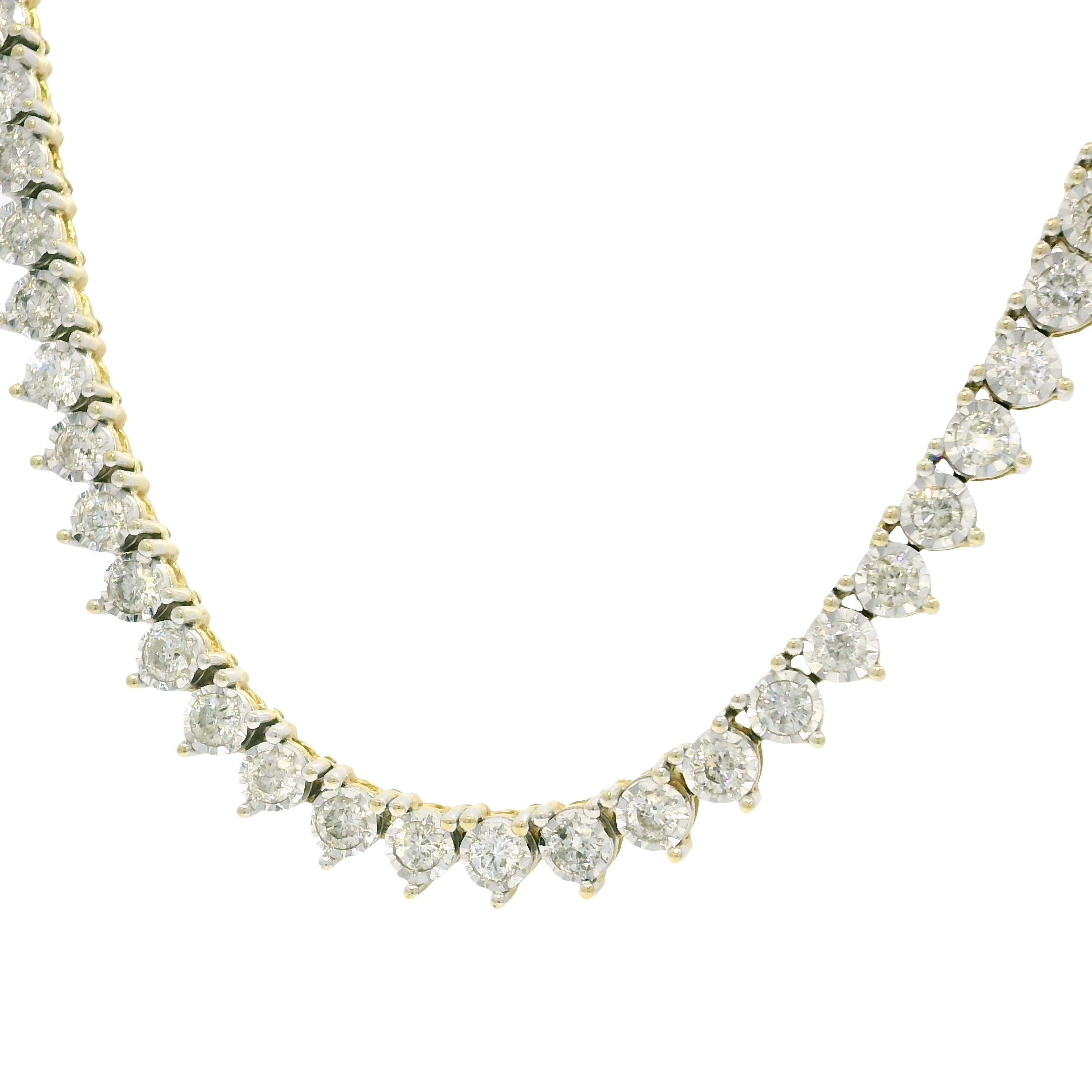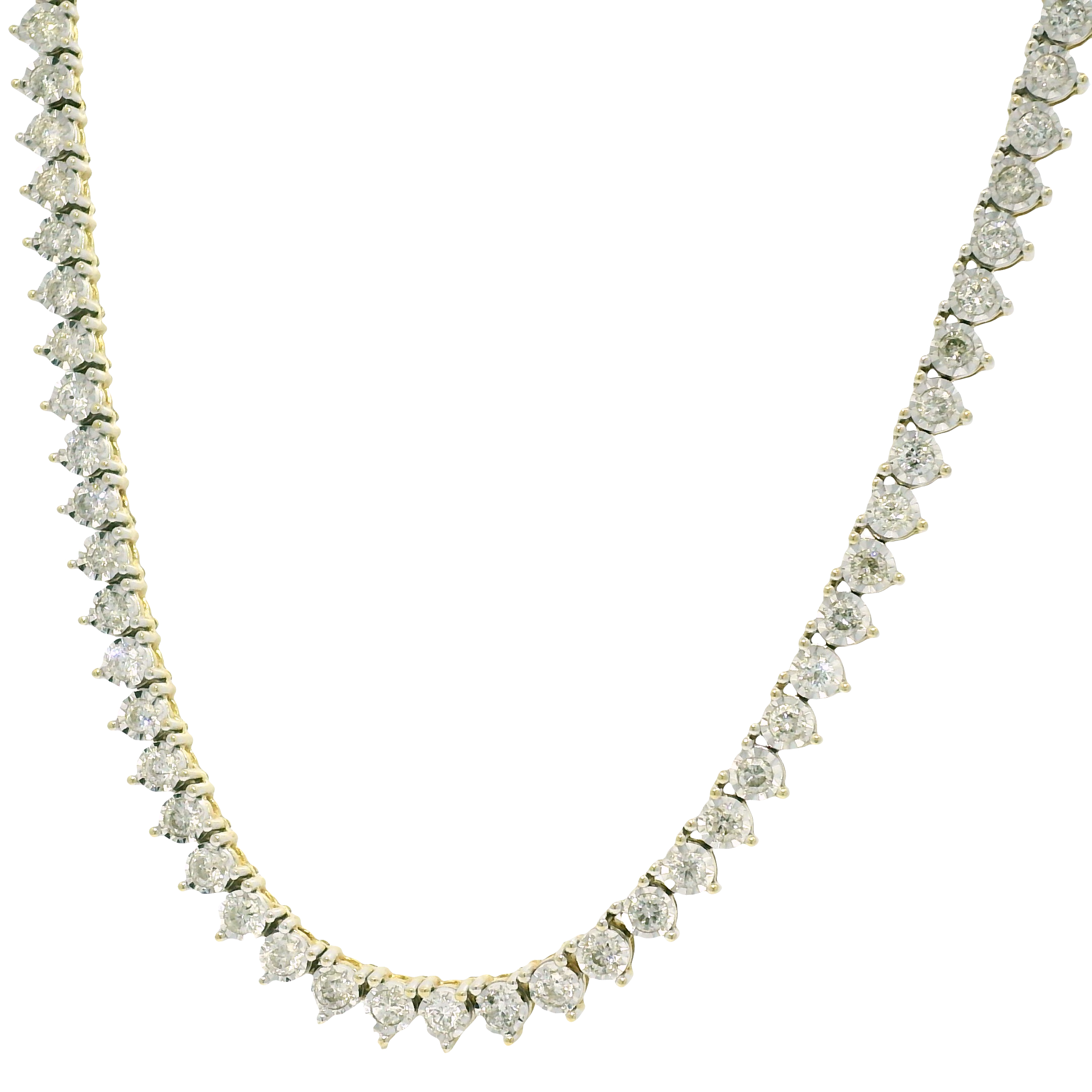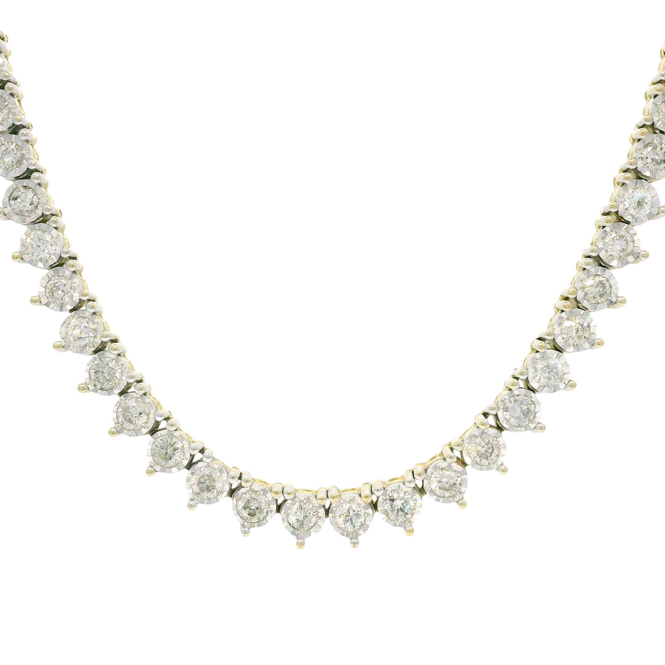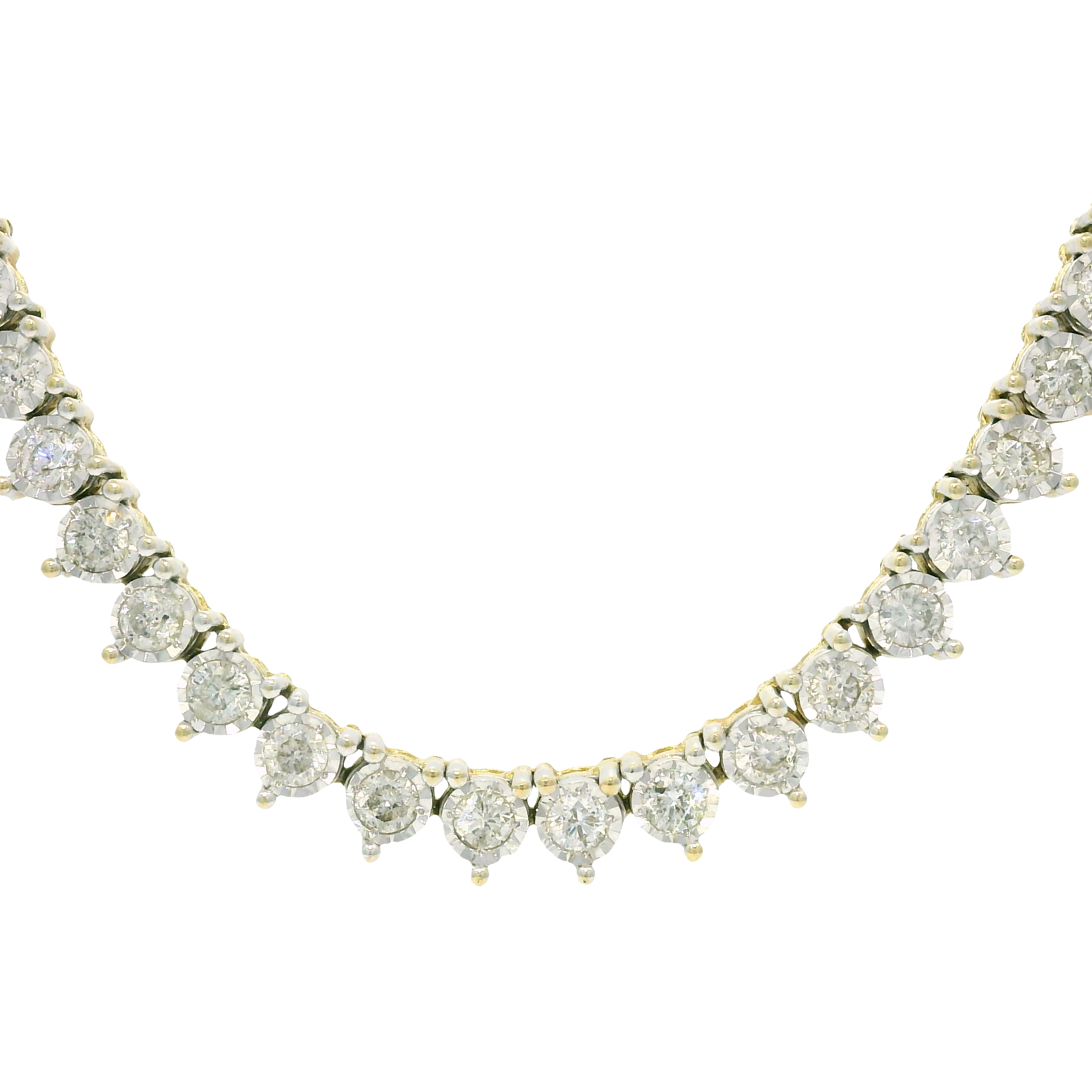 10k Two-Tone Gold Natural 4.50 Carat Diamond Illusion 3-Prong Tennis Necklace