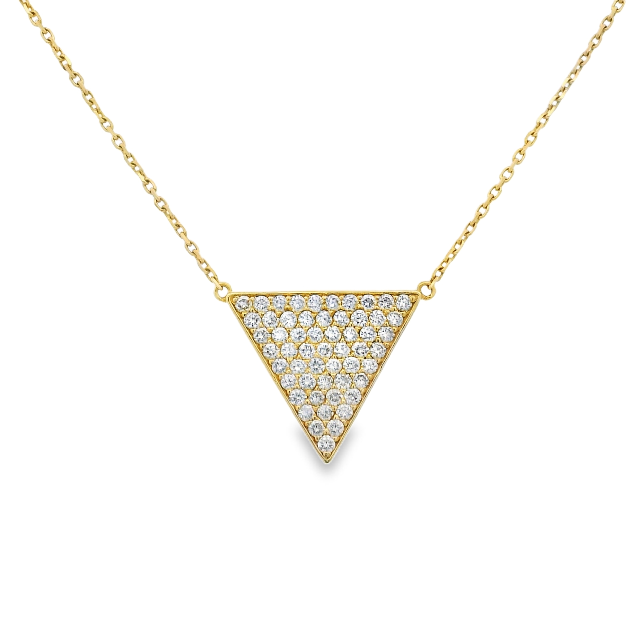 14k Yellow Gold Natural Diamond Pave Triangle Pendant Necklace
