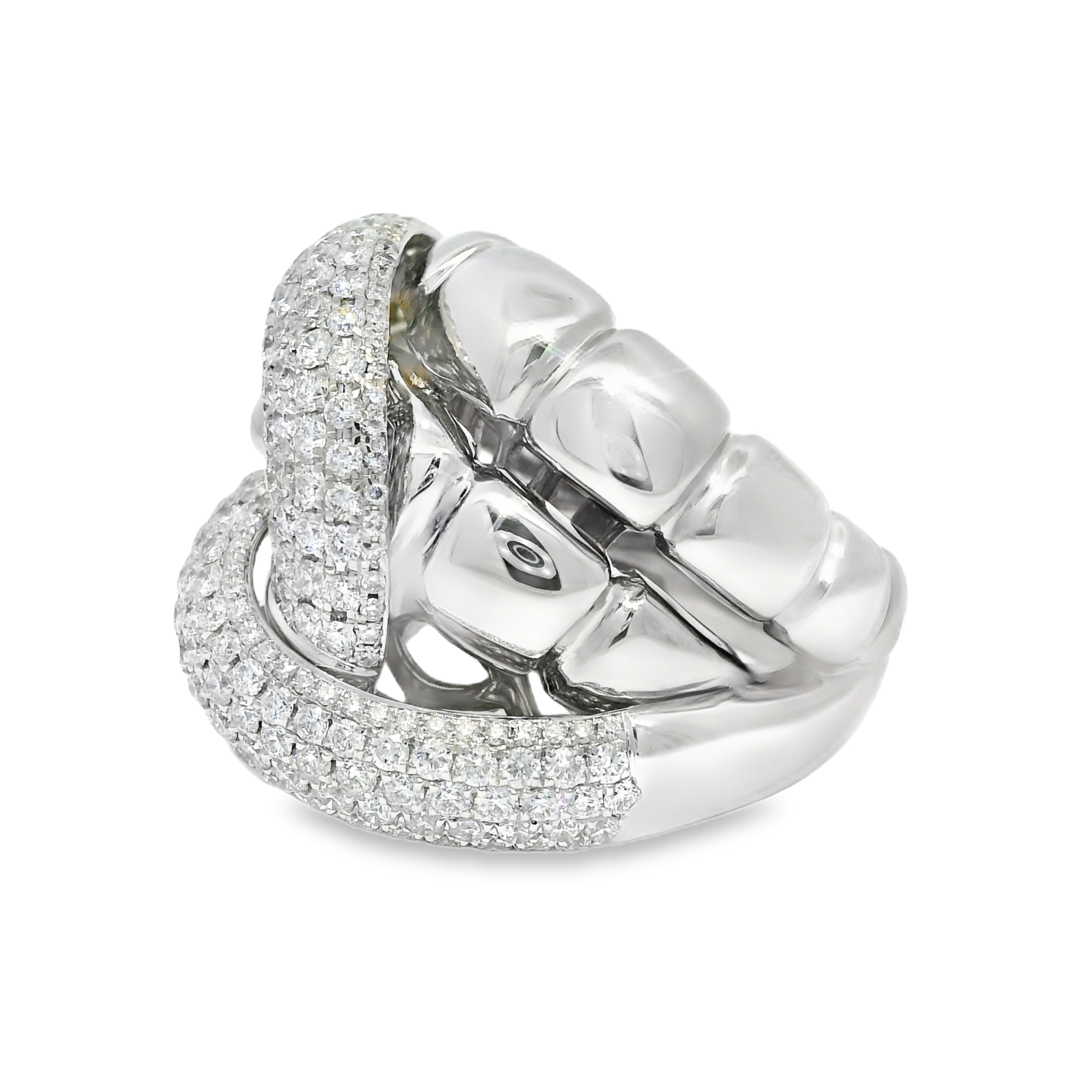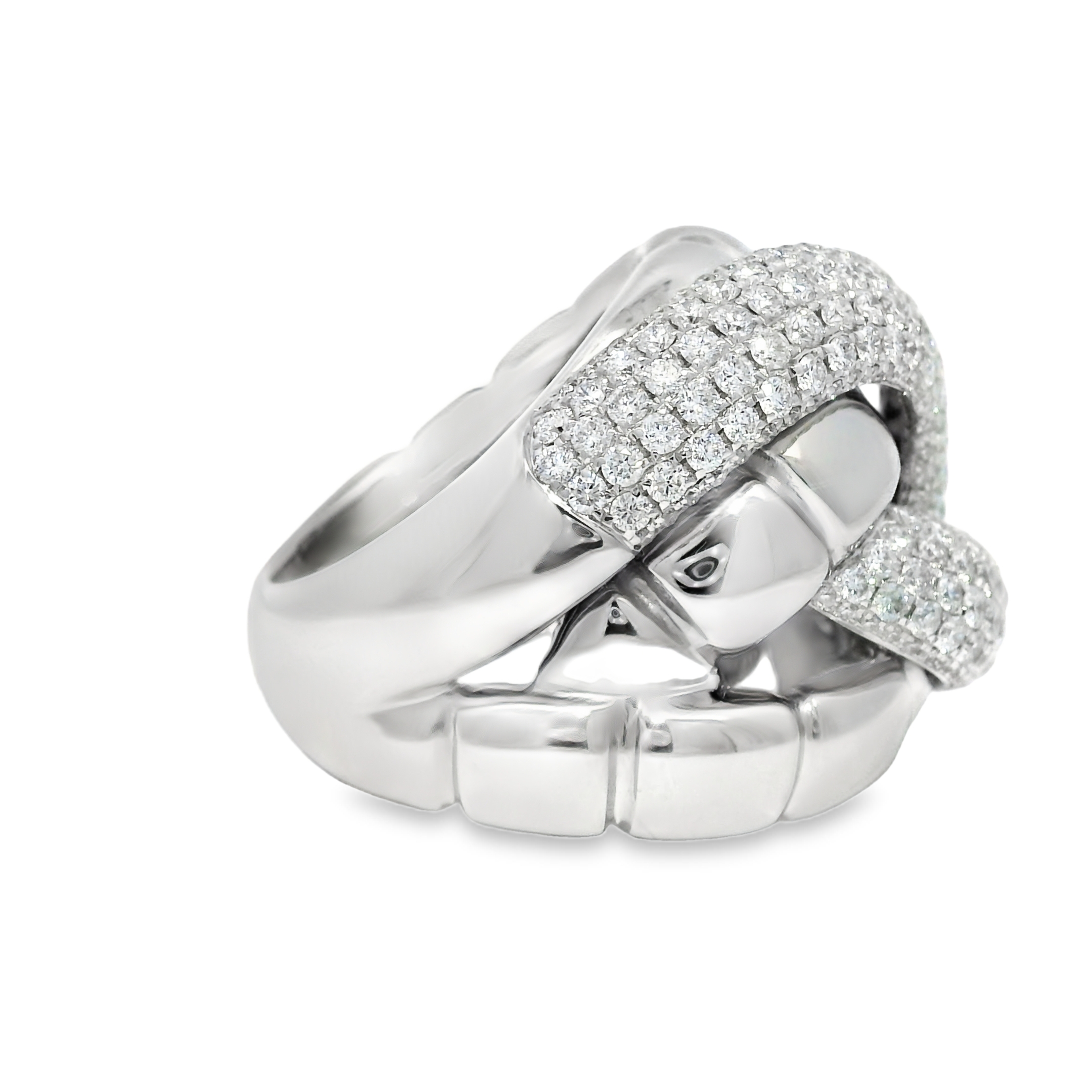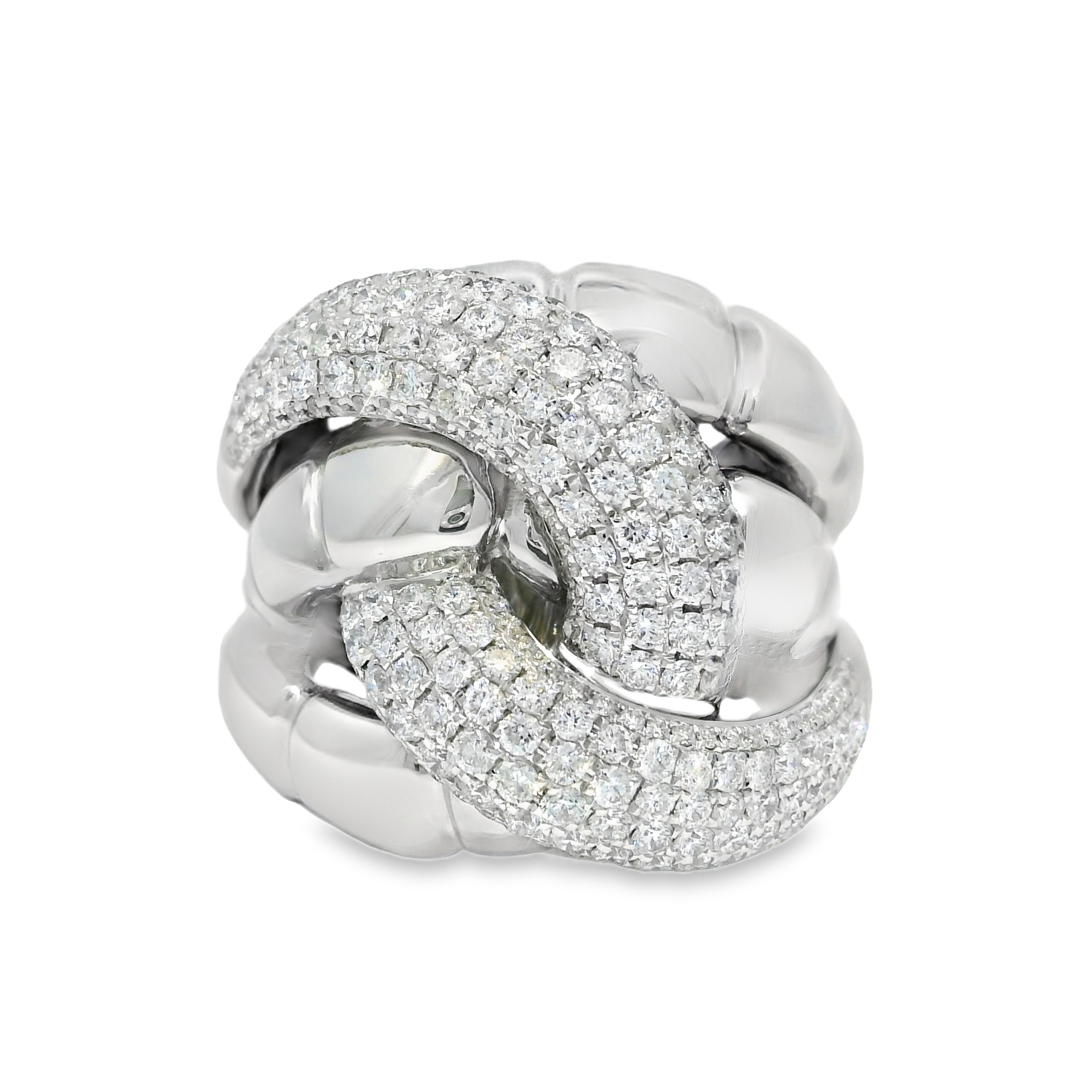 18k White Gold Natural 2.24 Carat Diamond Twisted Knot Ring
