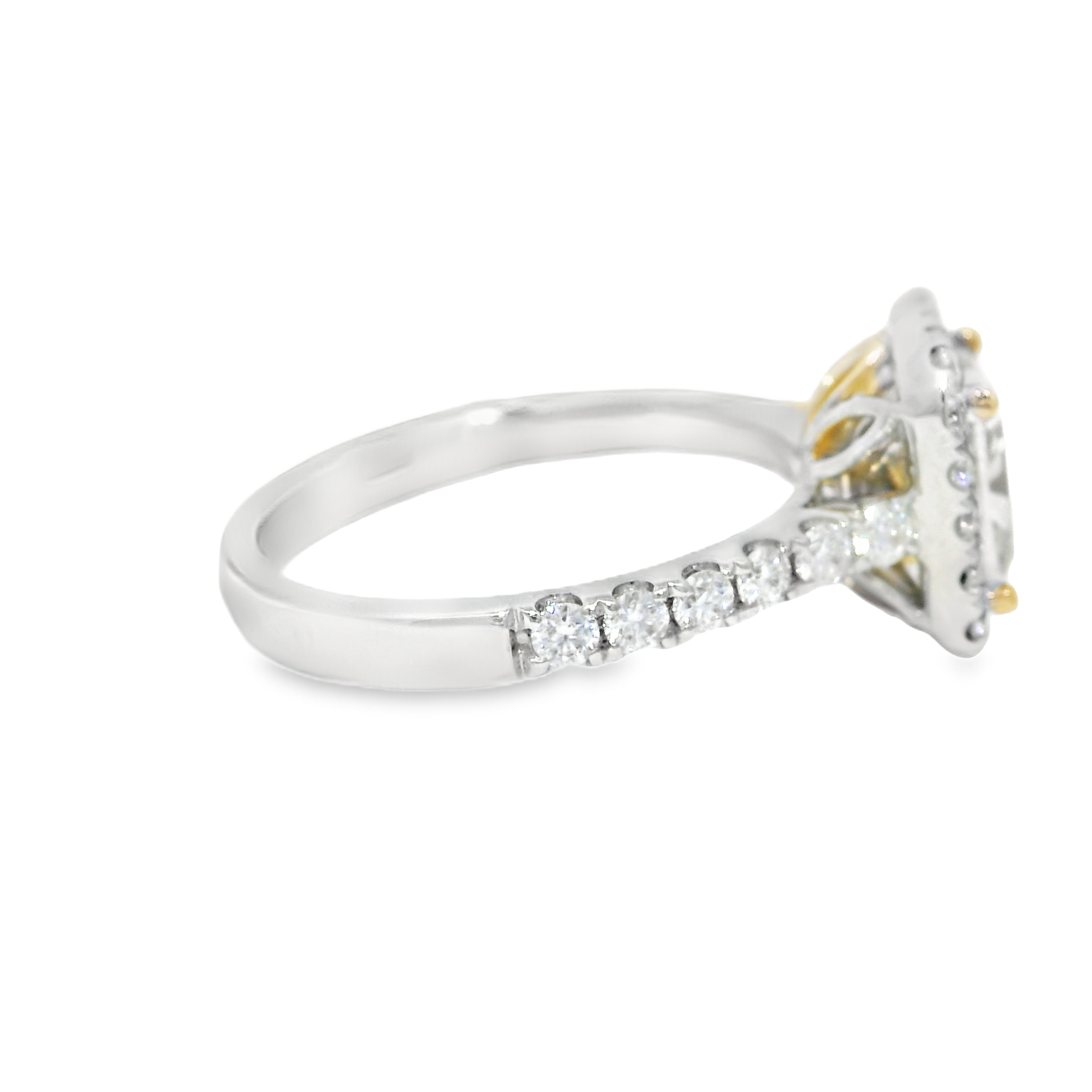18k White Gold Natural Yellow 1.77 Carat Radiant Cut Diamond Halo Engagement Ring