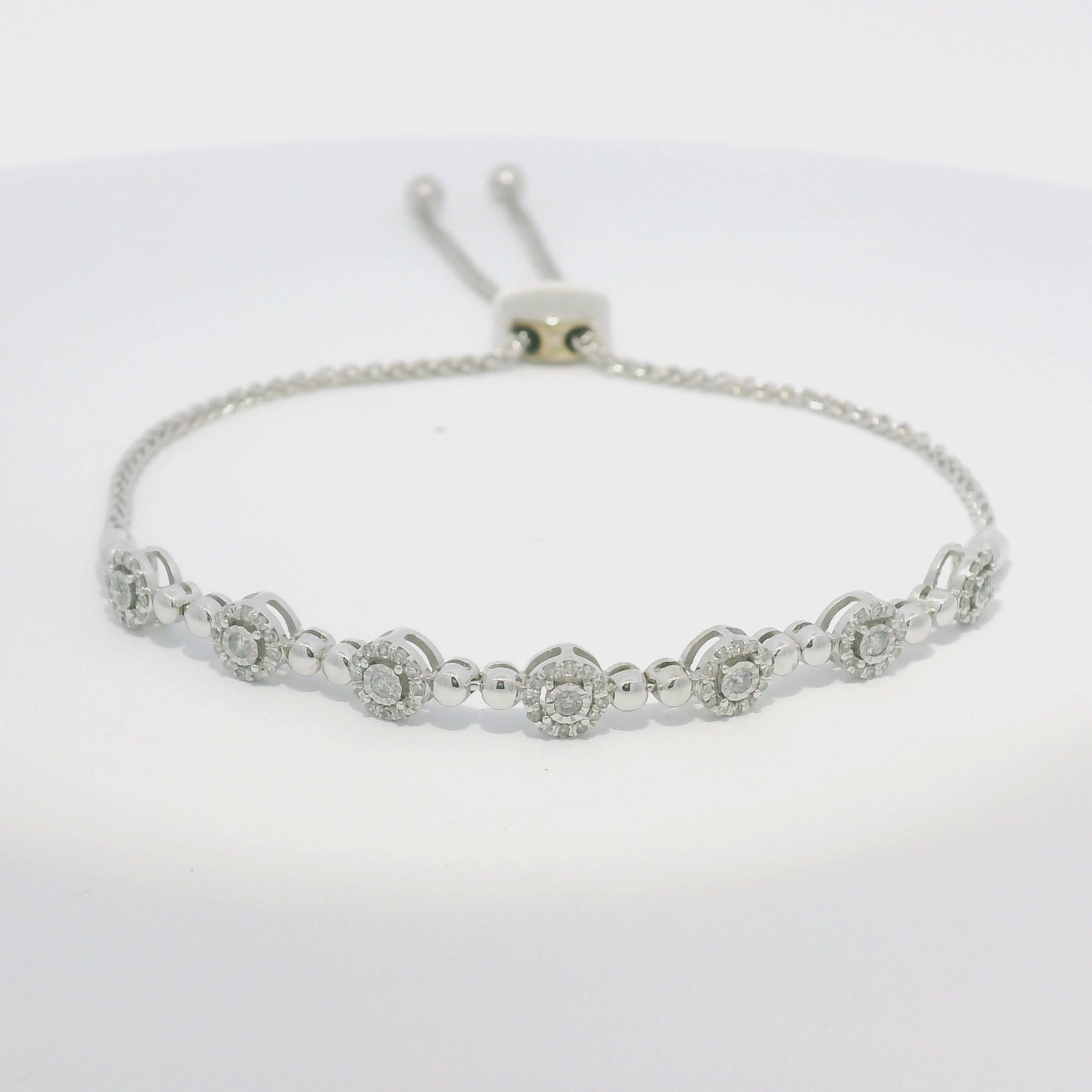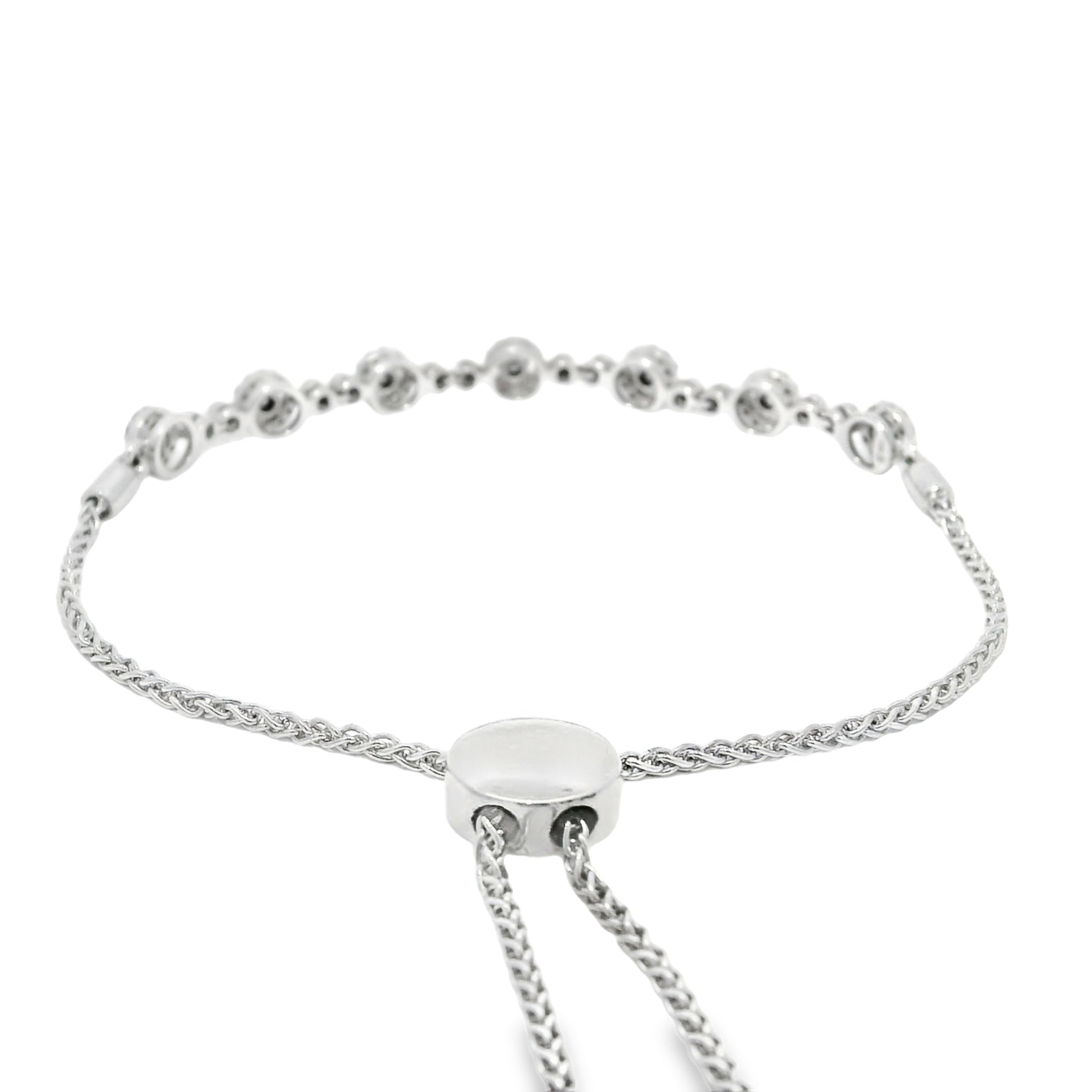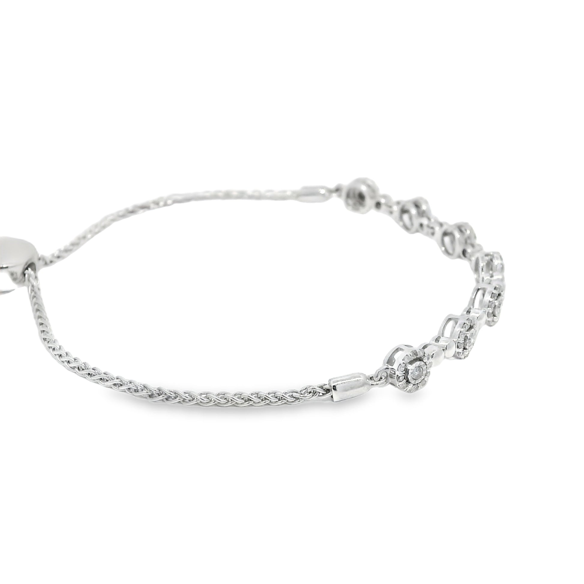 10k White Gold Natural Round Brilliant Diamond Adjustable Station Bracelet