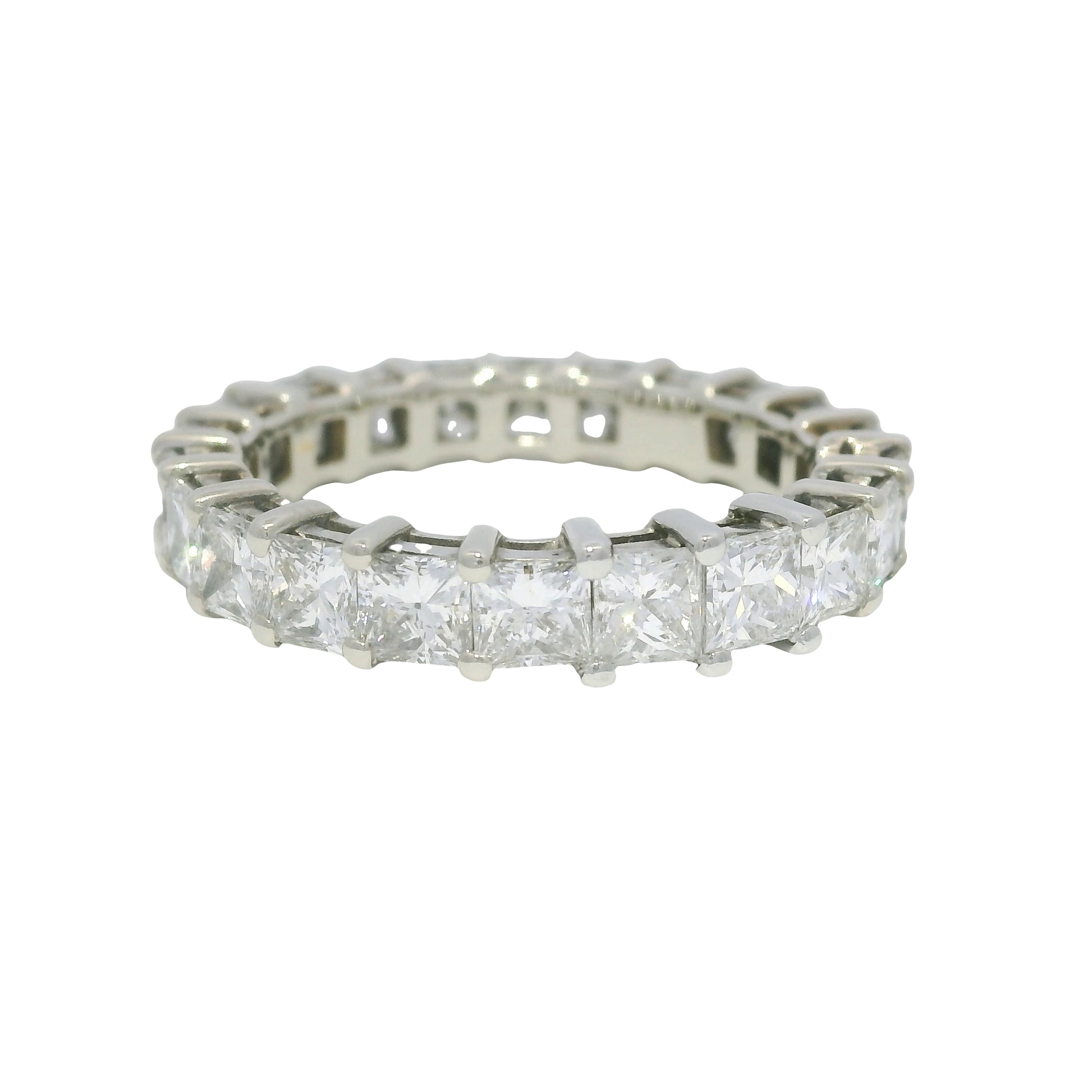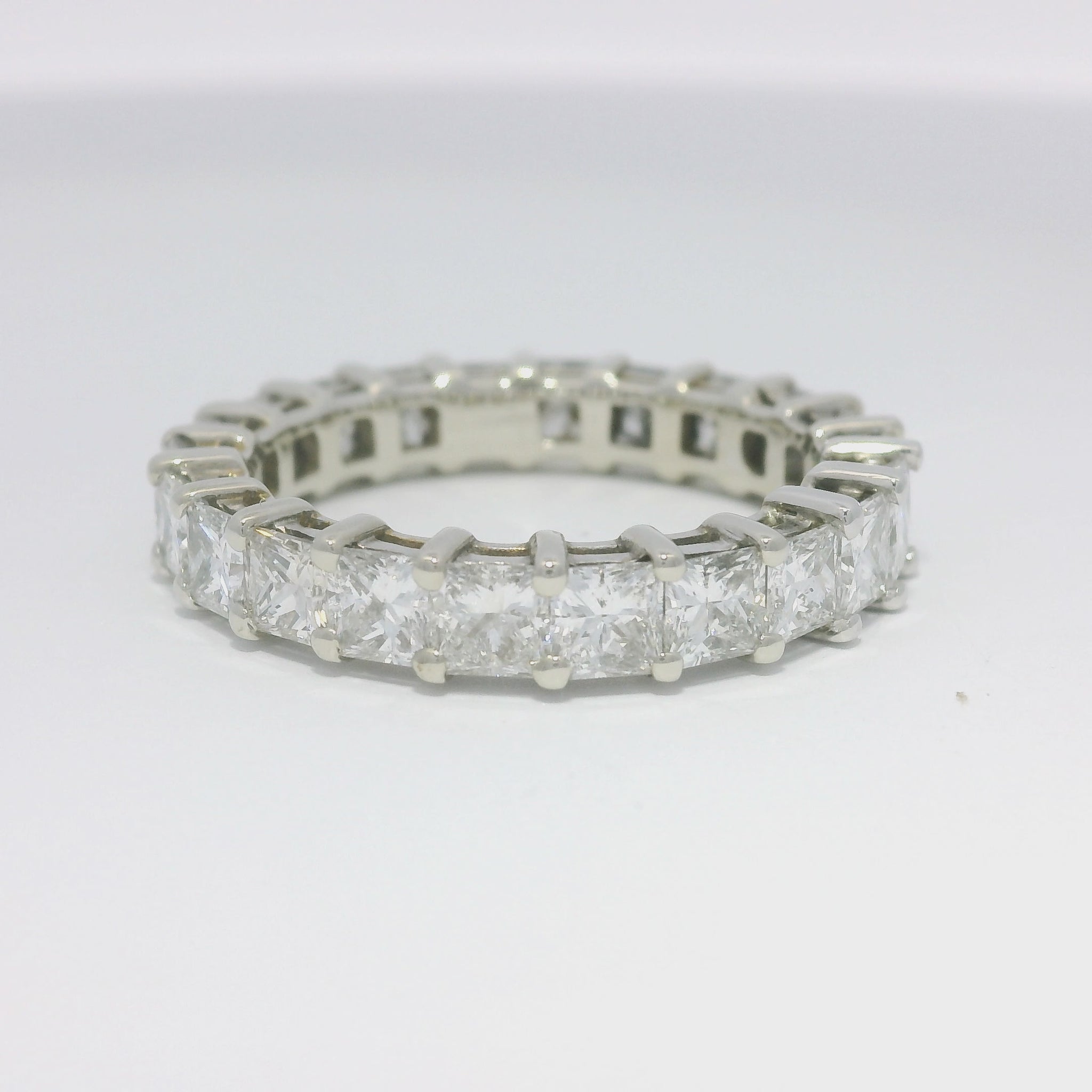 14k White Gold Natural 3.30 Carat Princess Cut Diamond Eternity Ring