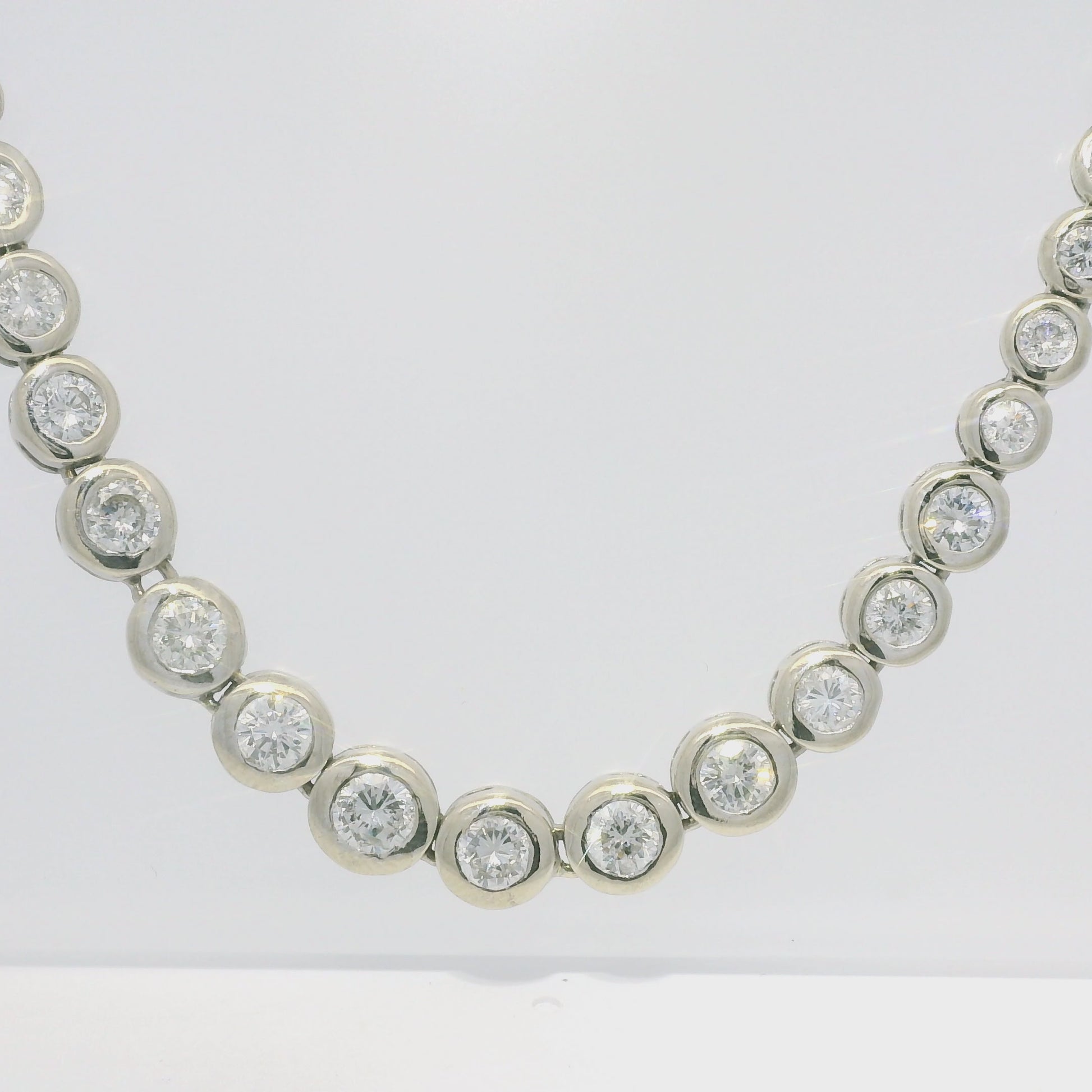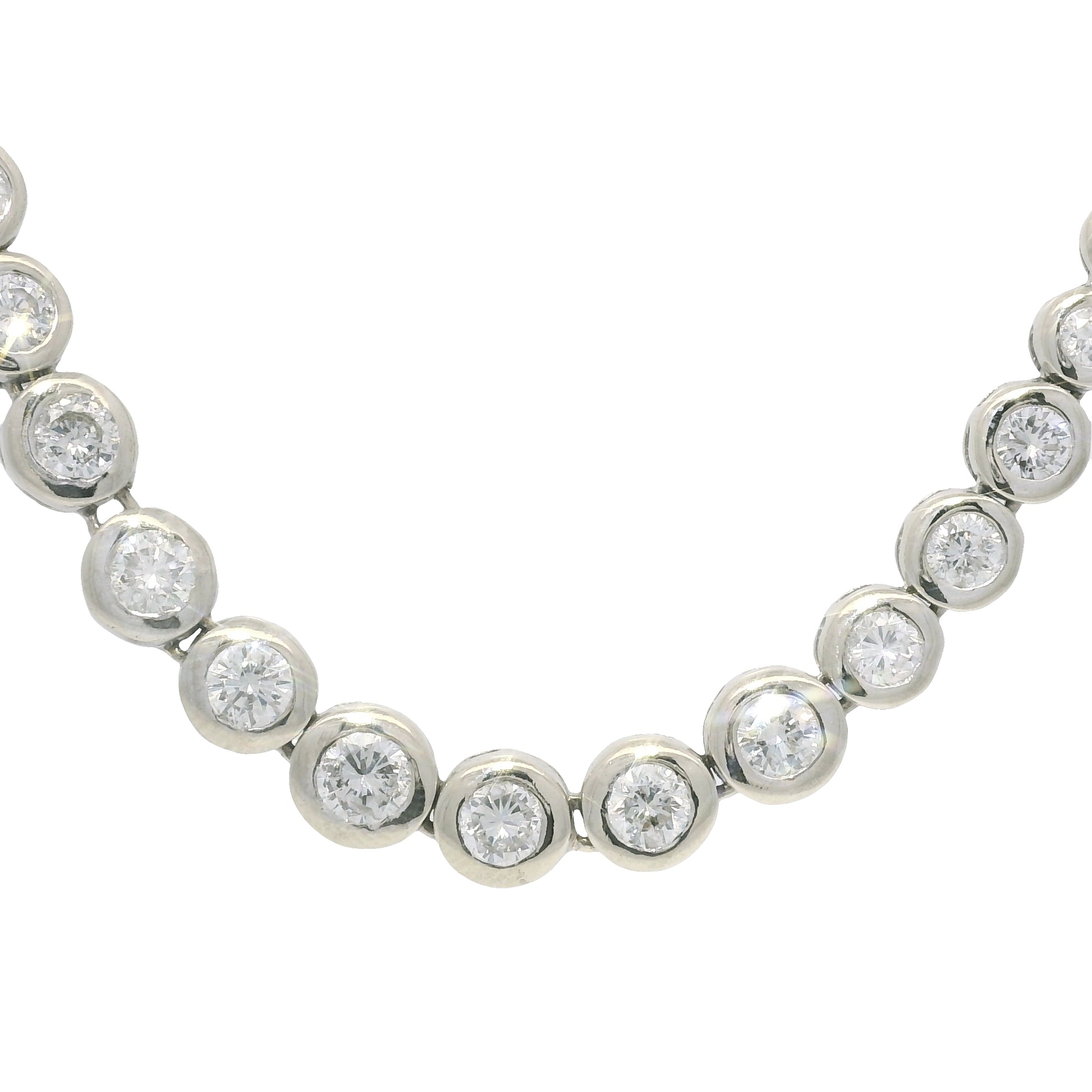 | Diamond Details | There are approximately 6.60 carats of, natural, bezel set, round brilliant-cut, diamonds. The diamonds are graduated and continue around the entire necklace. |