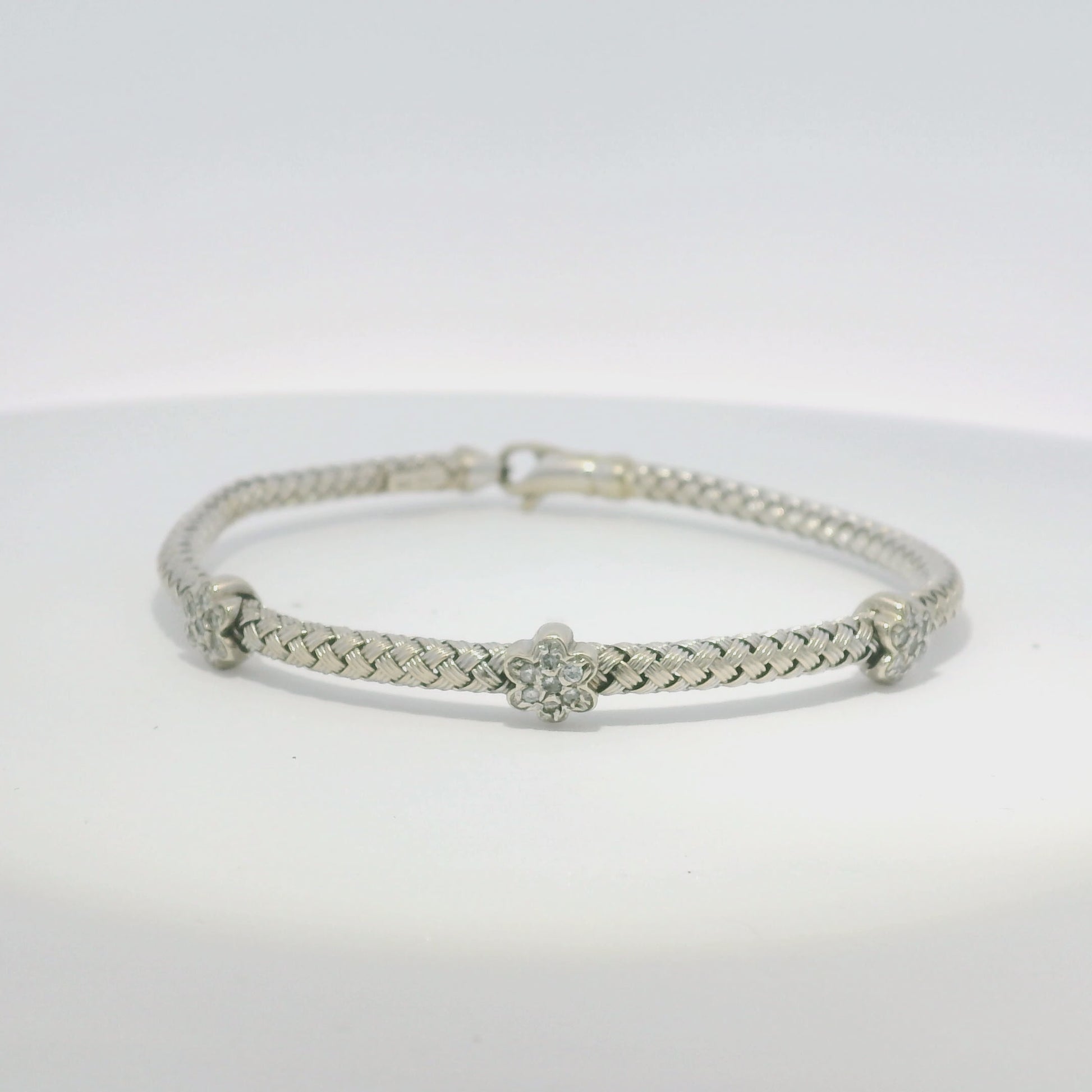 14k White Gold Natural Diamond Flower Flexible Bracelet