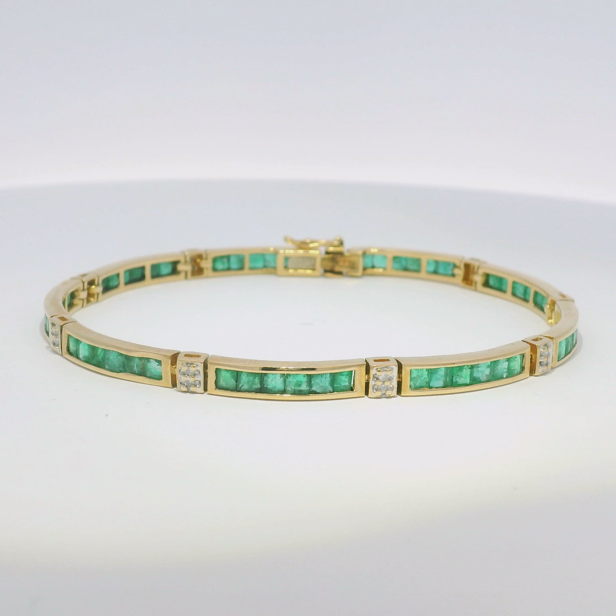 14k Yellow Gold Emerald Channel Set Station Bracelet
