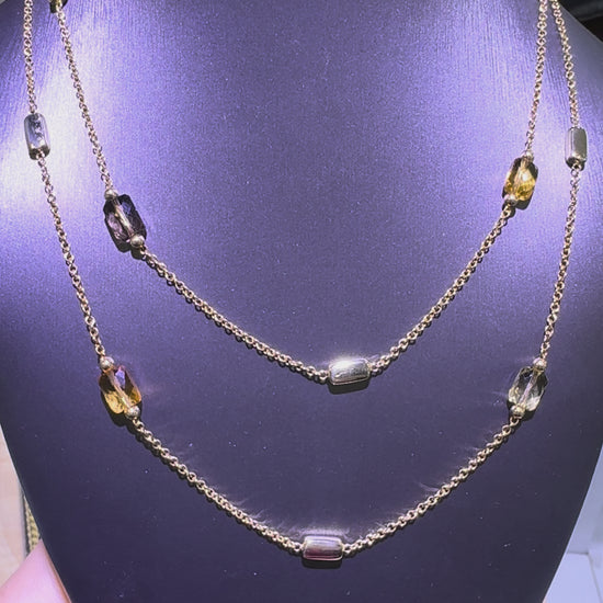 14k Yellow Gold Faceted Stone & Gold Station 34" Long Necklace