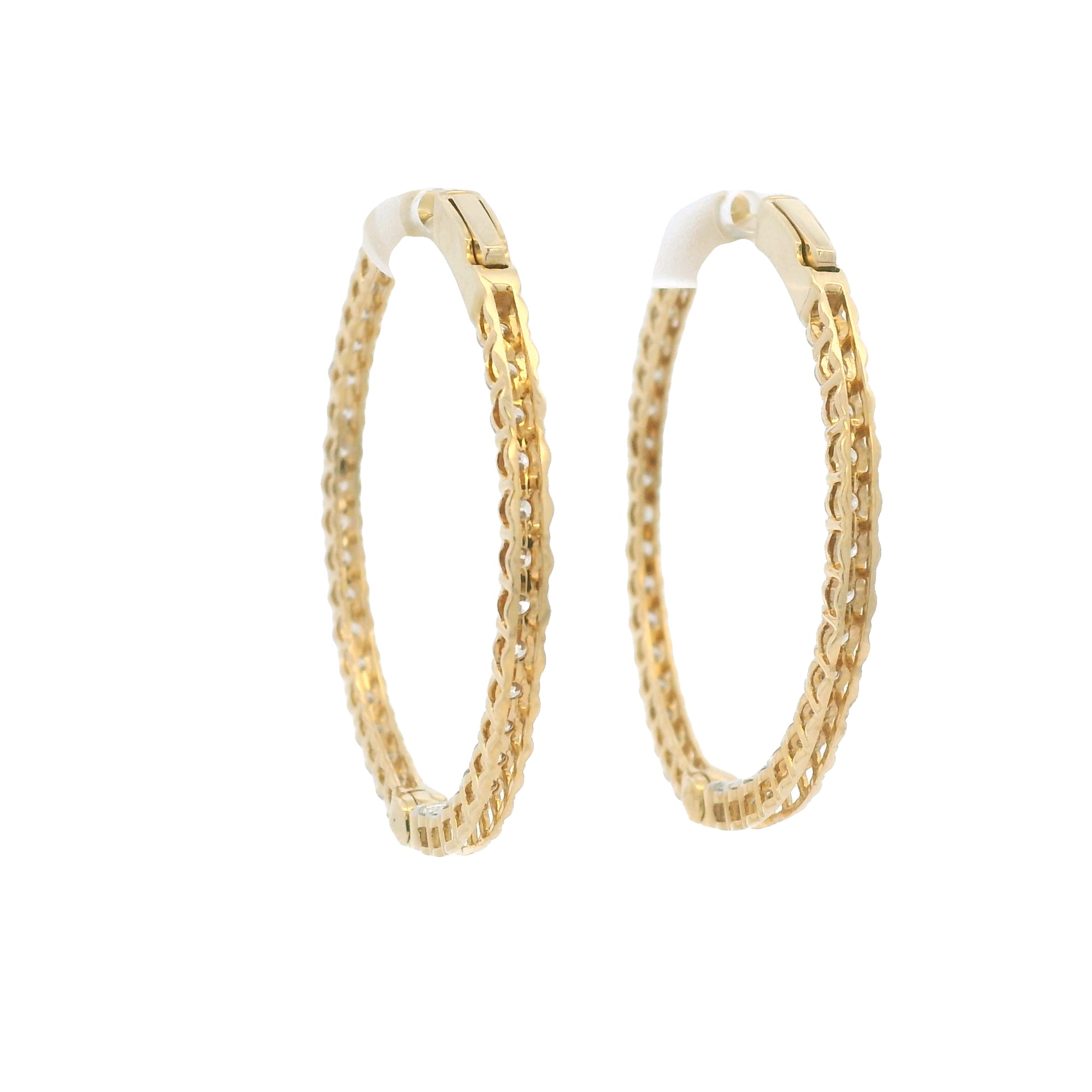 14k Yellow Gold Natural 2.35 Carat Diamond Inside-Out Hoop Earrings