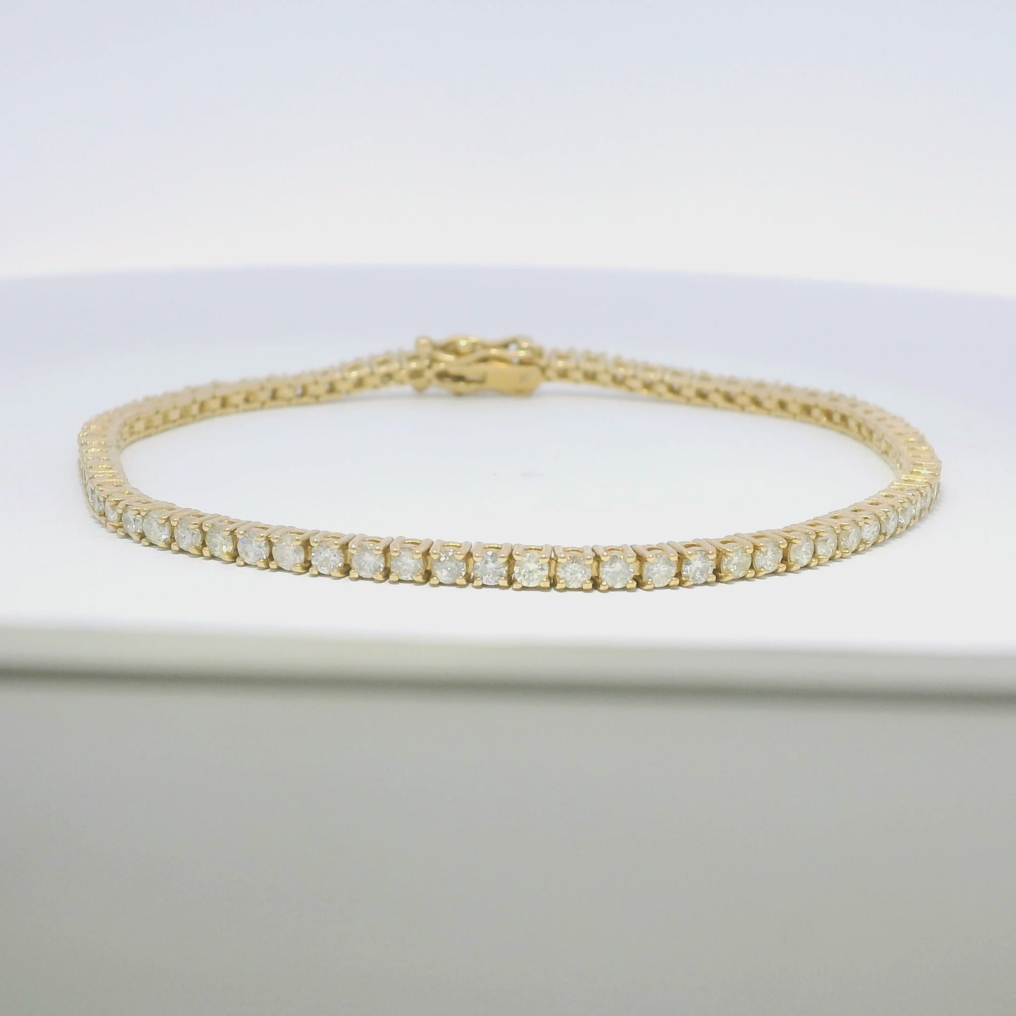 14k Yellow Gold Natural 2.53 Carat Round Brilliant Diamond Tennis Bracelet