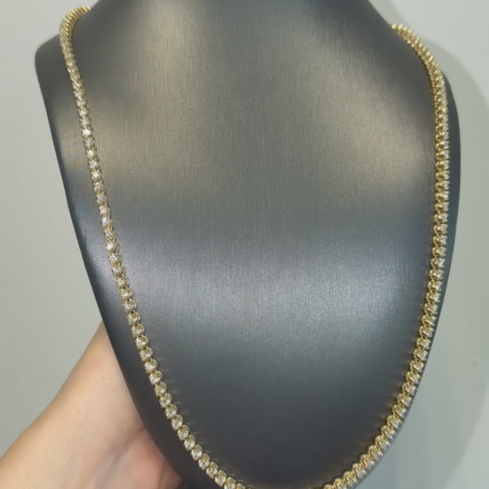 14k Yellow Gold Natural 4.95 Carat Round Brilliant Cut Diamond Tennis Necklace