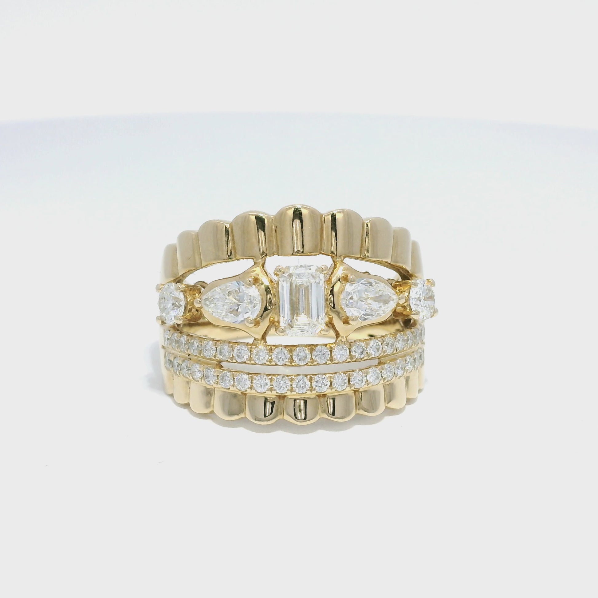 14k Yellow Gold Natural Diamond Emerald Cut & Pear Shape Multi-Row Ring