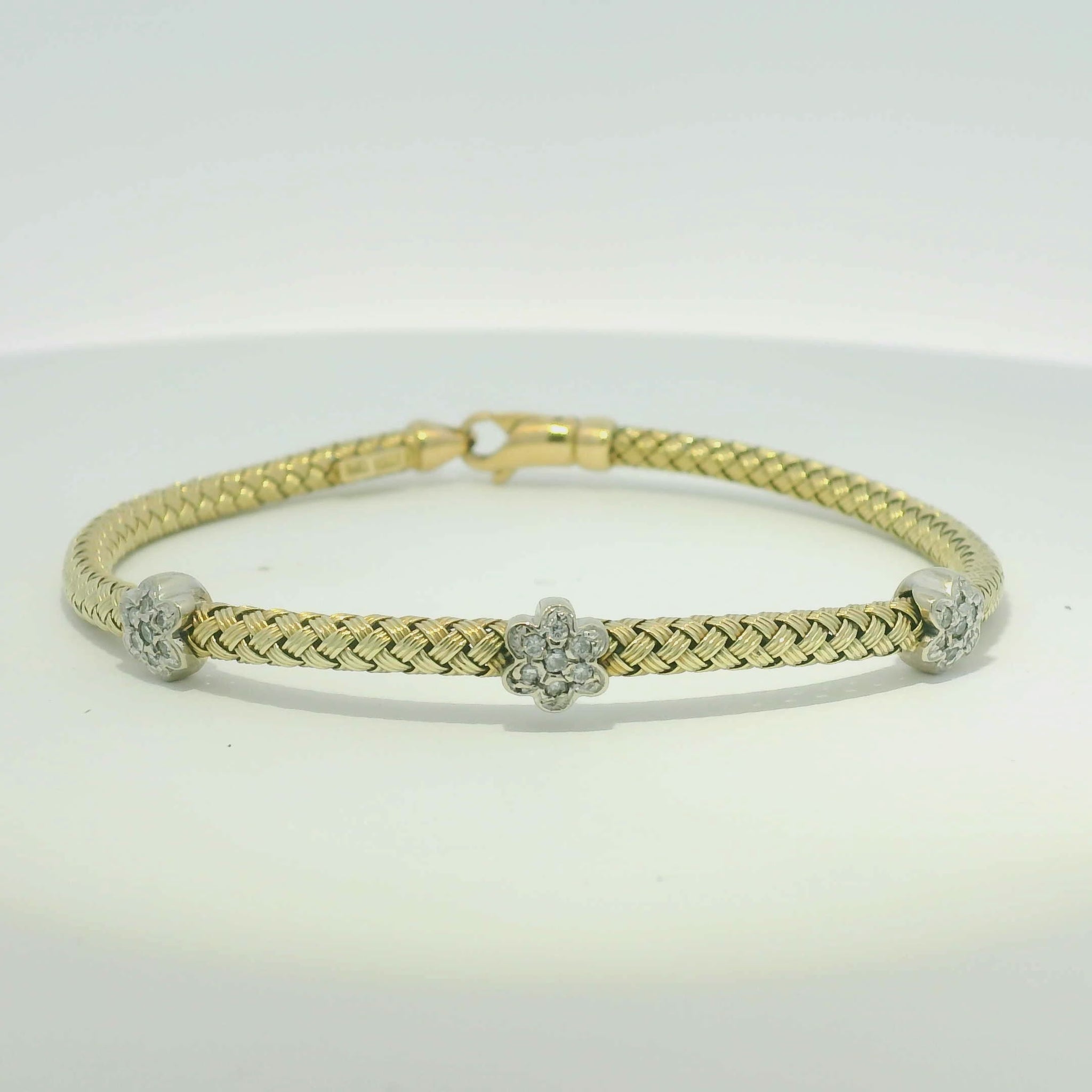 14k Yellow Gold Natural Diamond Flower Flexible Bracelet