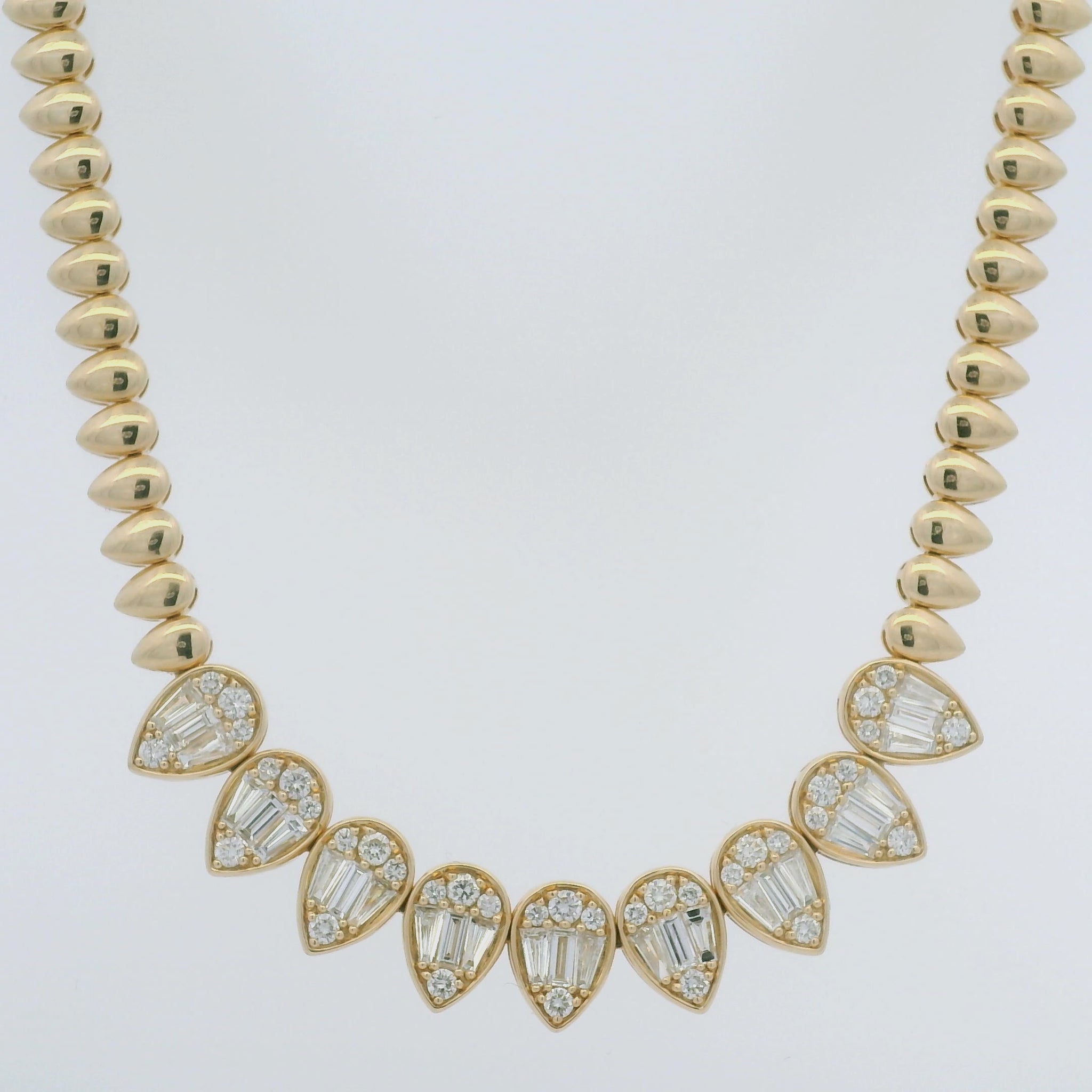 14k Yellow Gold Natural Diamond Spiked Collar Necklace