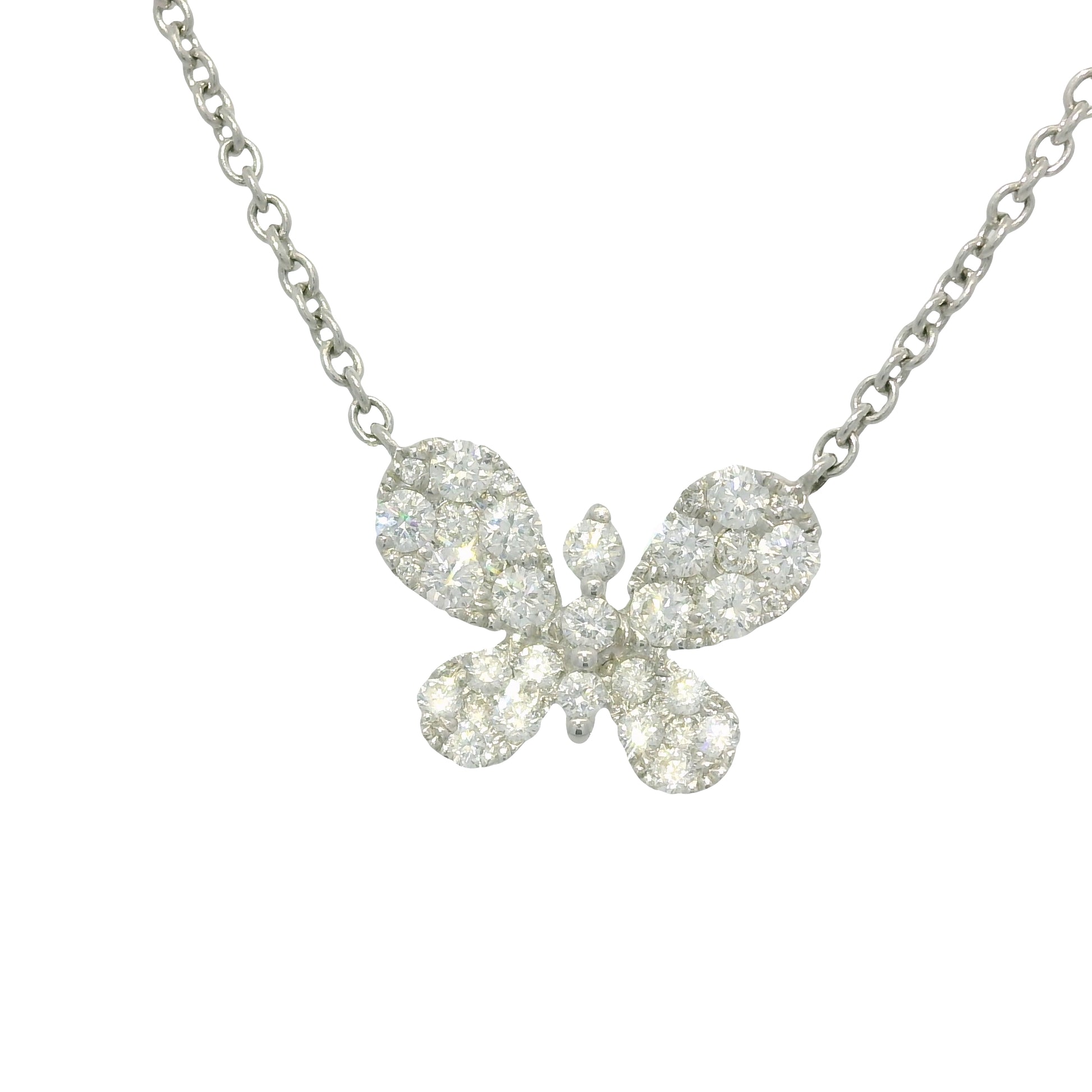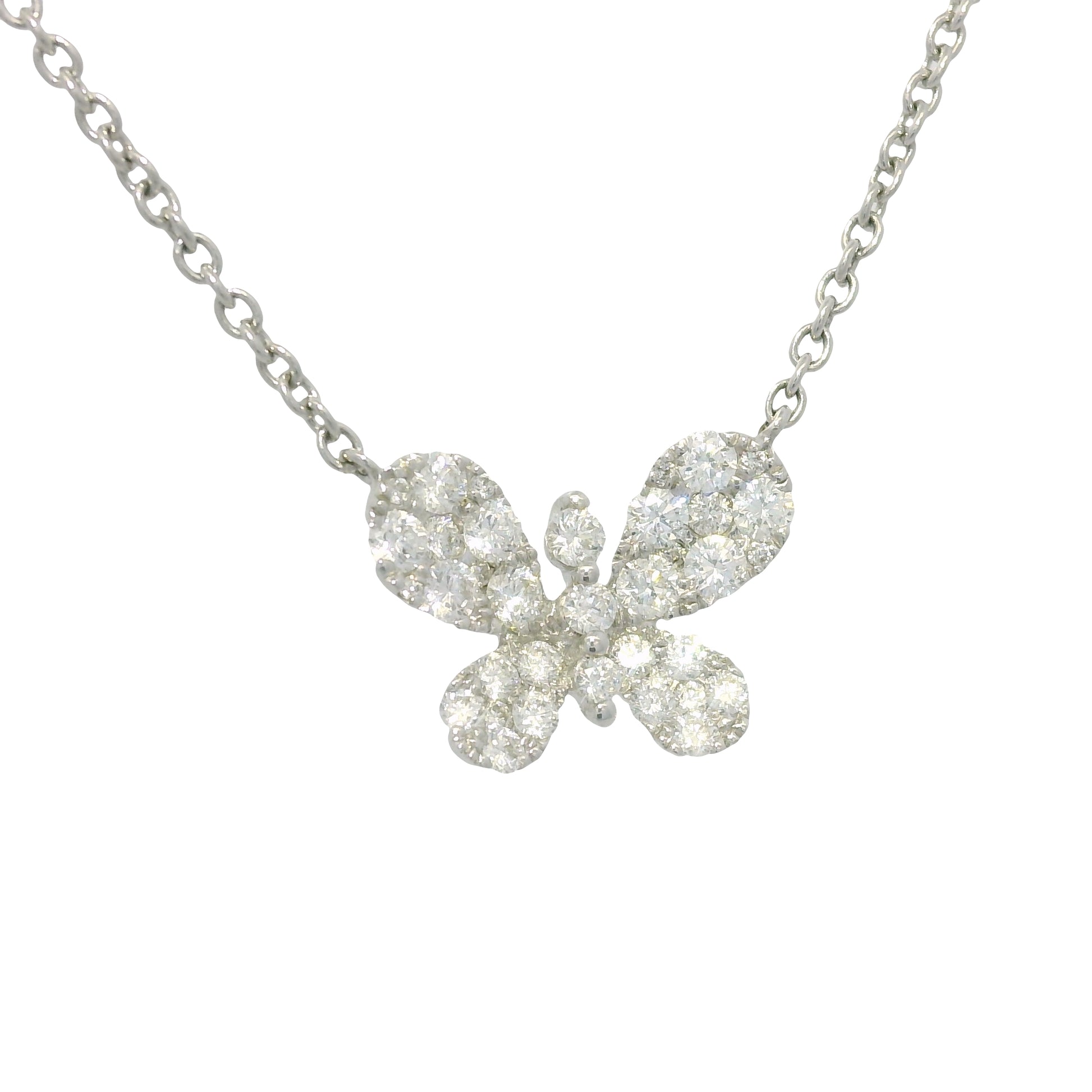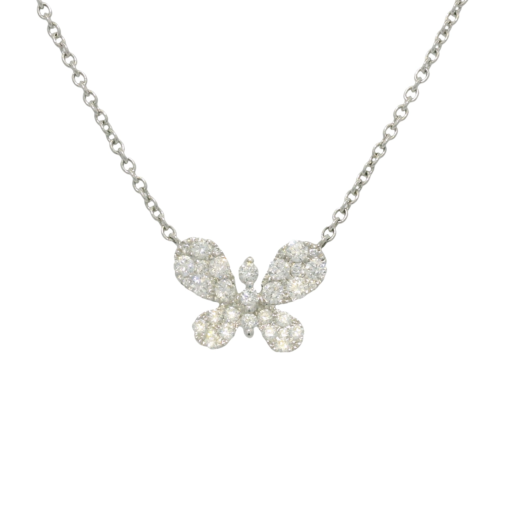 18k White Gold Natural 0.33 Carat Diamond Pave Butterfly Necklace