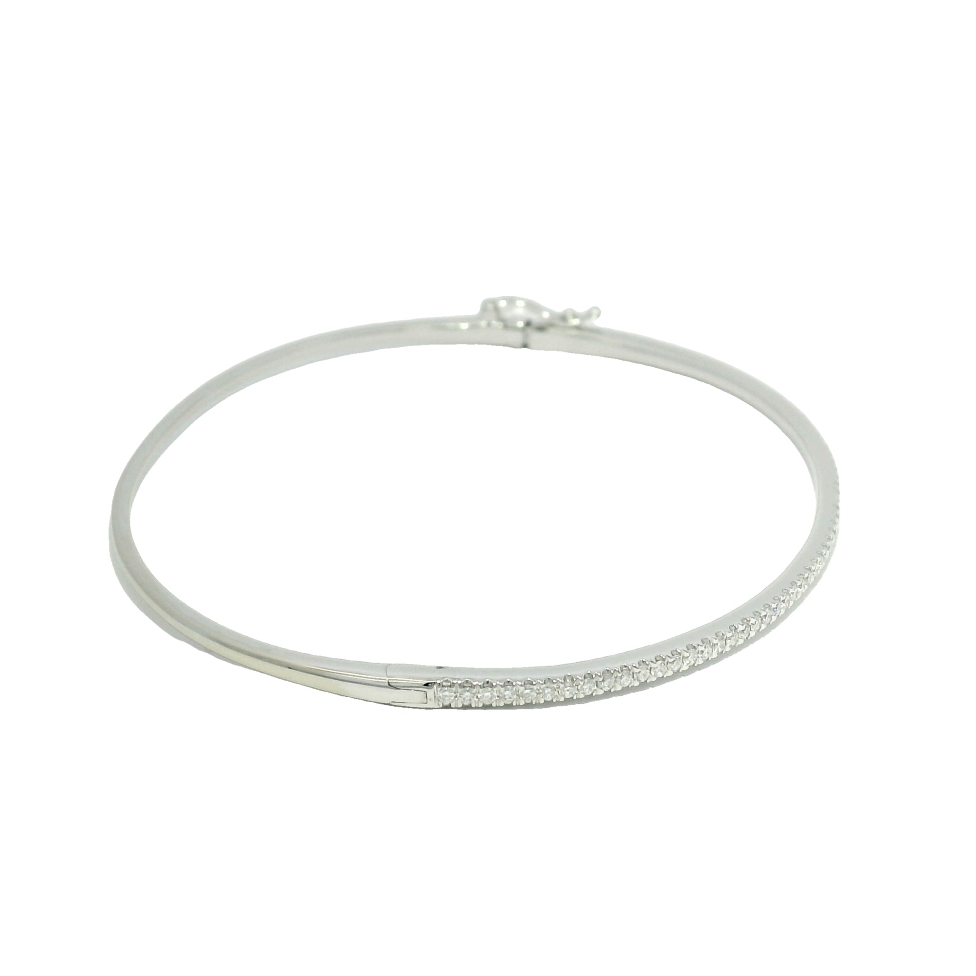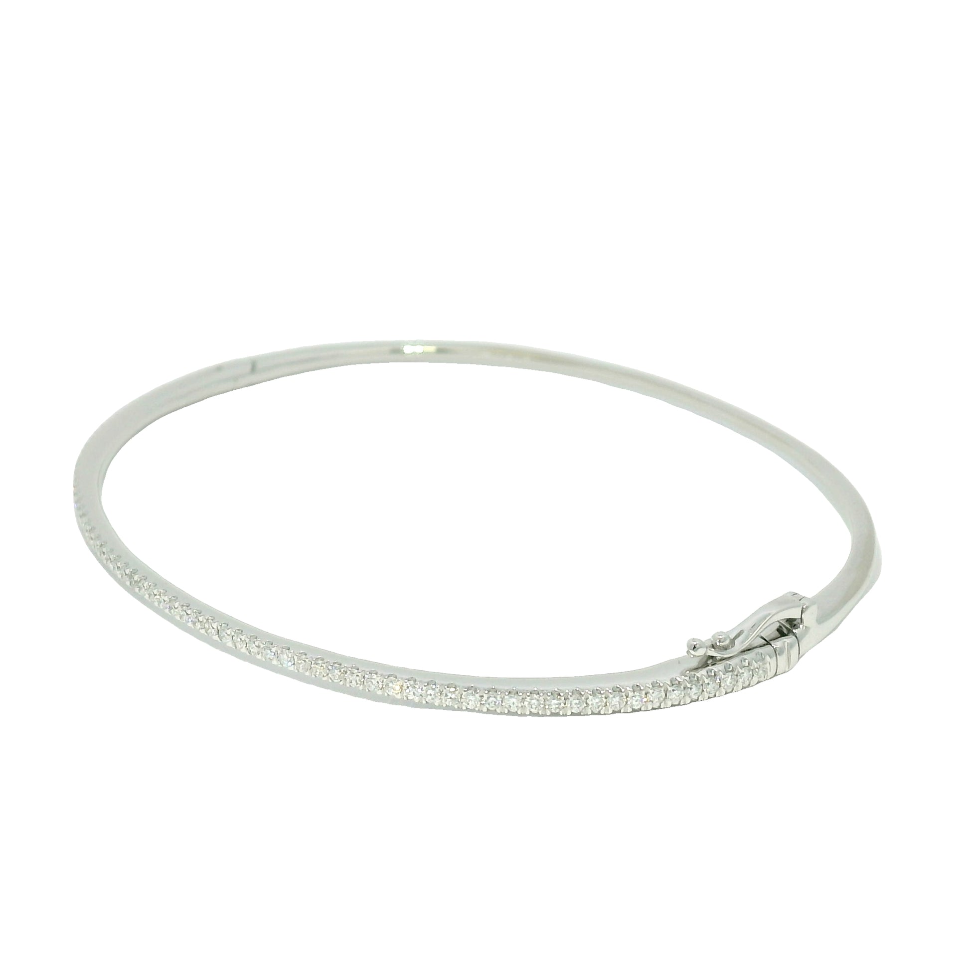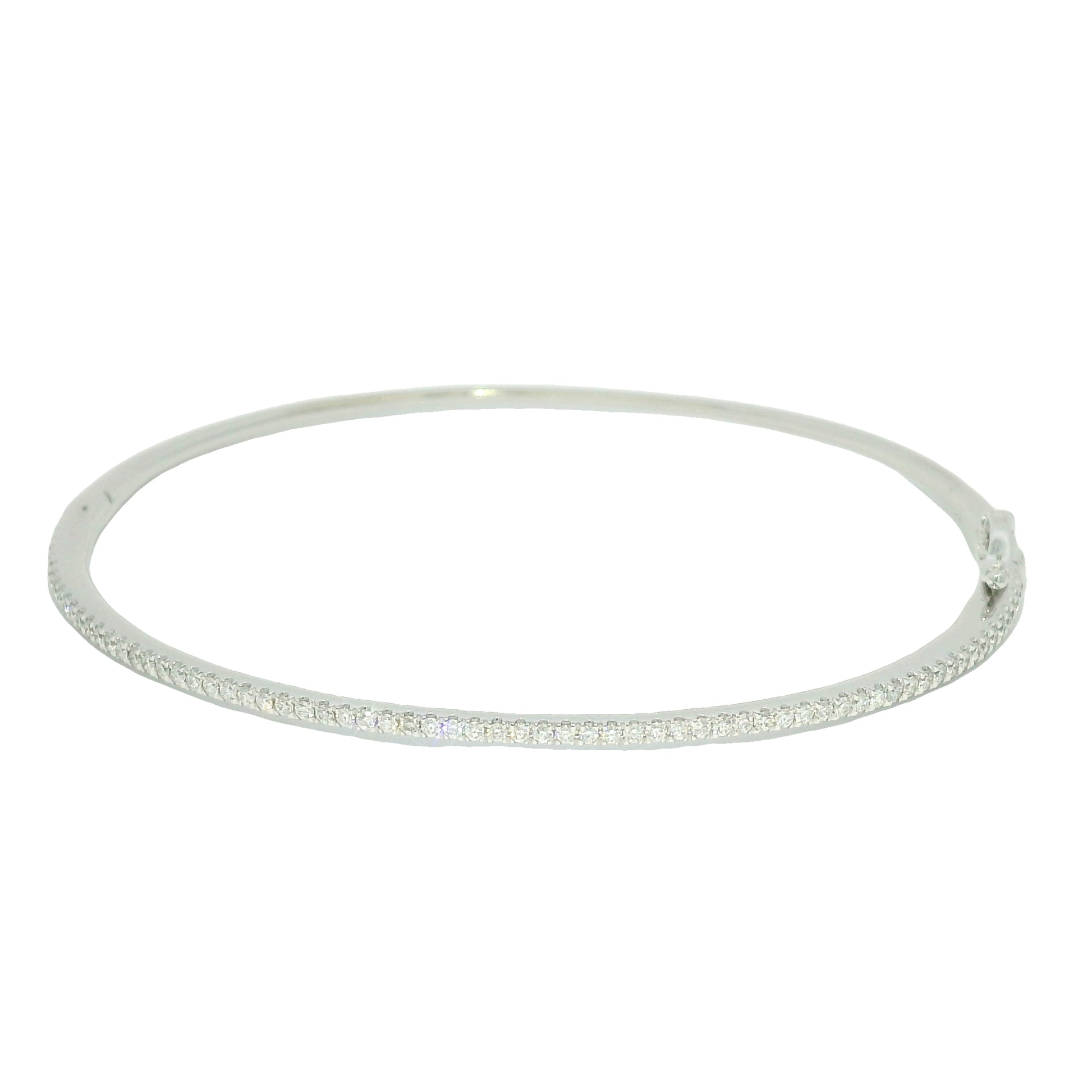 18k White Gold Natural 0.90 Carat Diamond Thin Bangle Bracelet