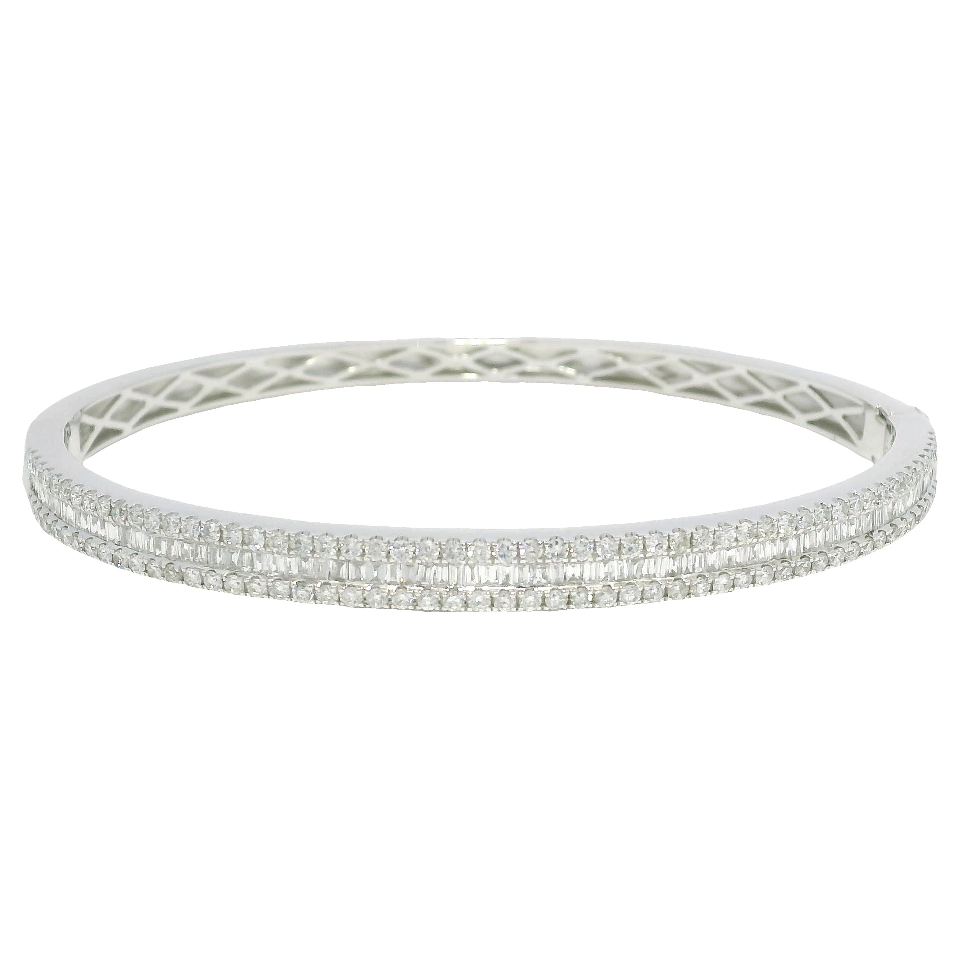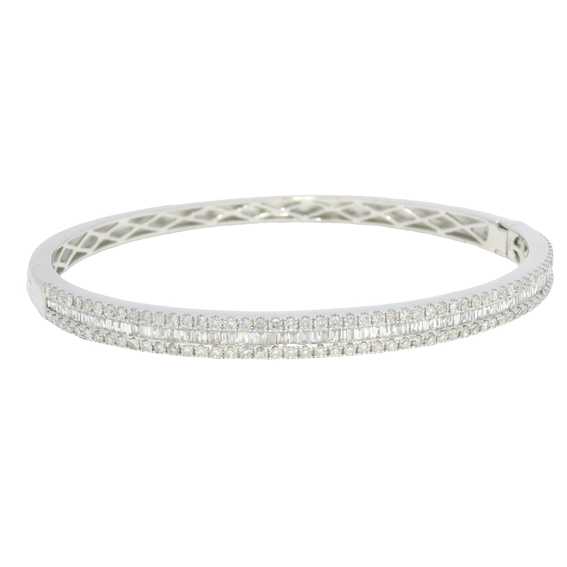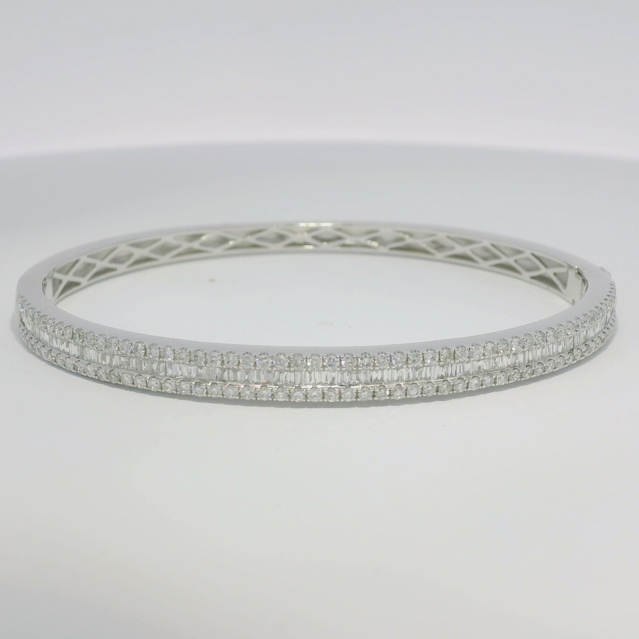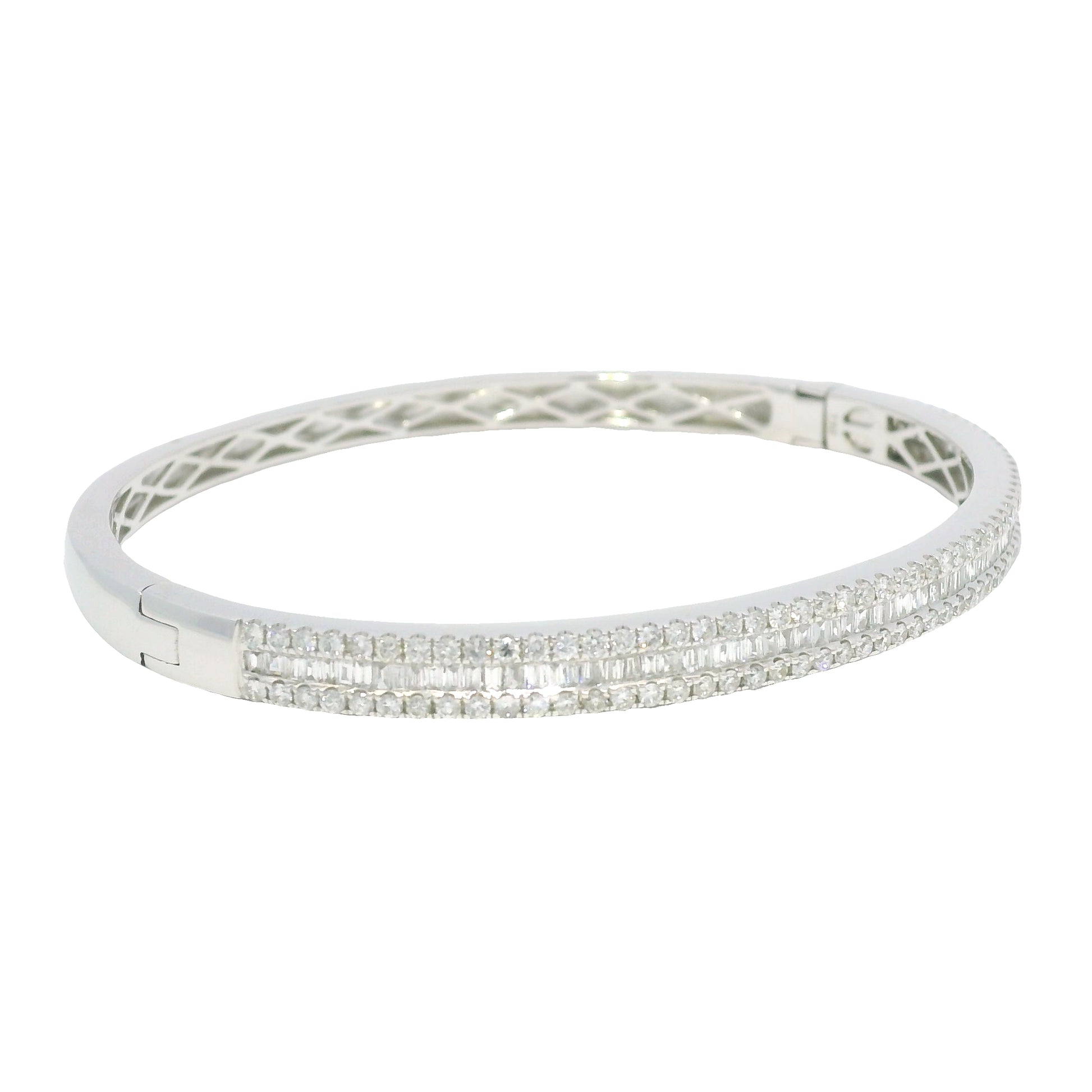 18k White Gold Natural 1.70 Carat Diamond Bangle Bracelet