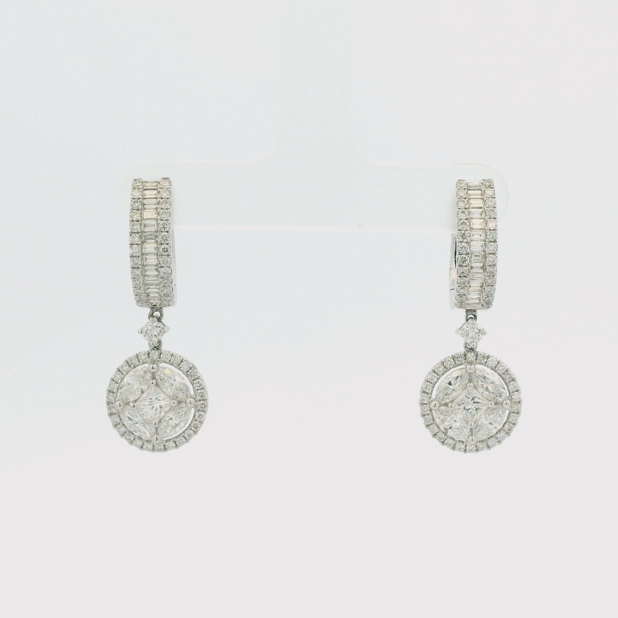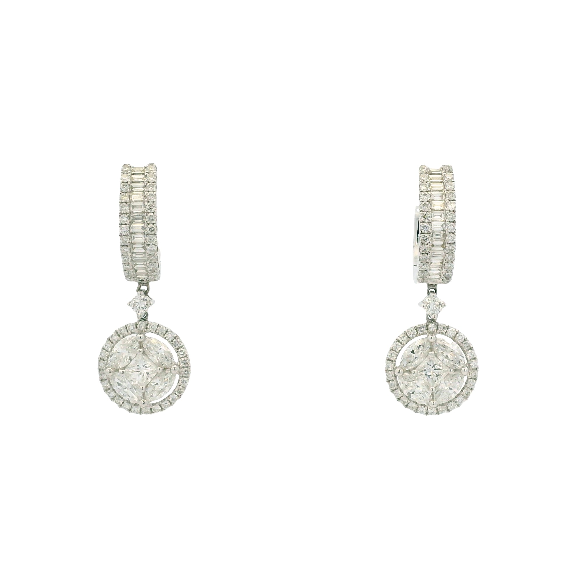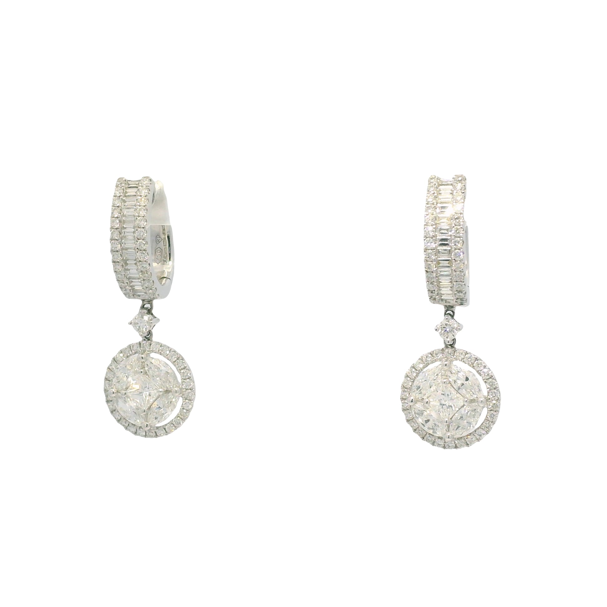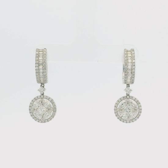 18k White Gold Natural 3.38 Carat Diamond Multi-Shape Mosaic Earrings