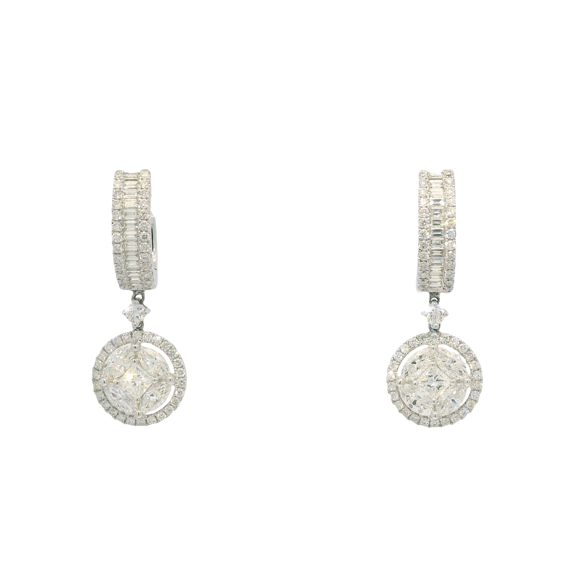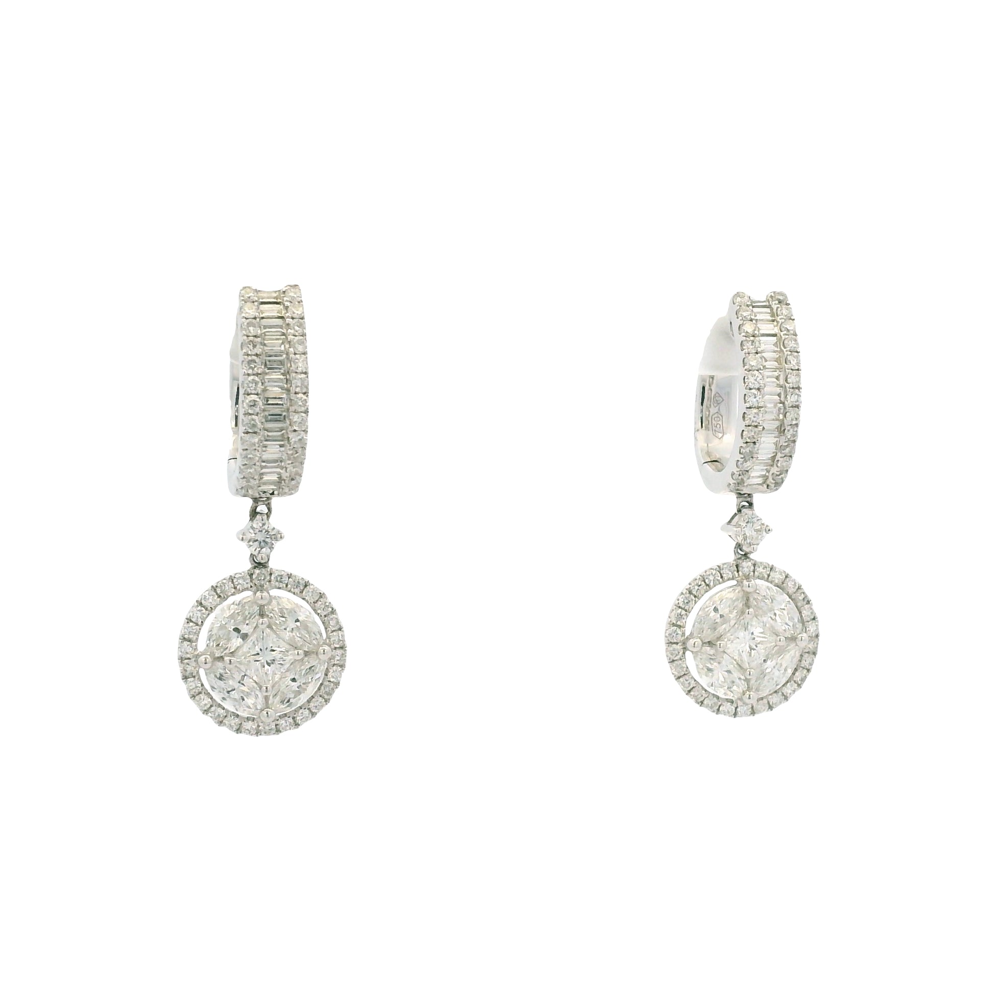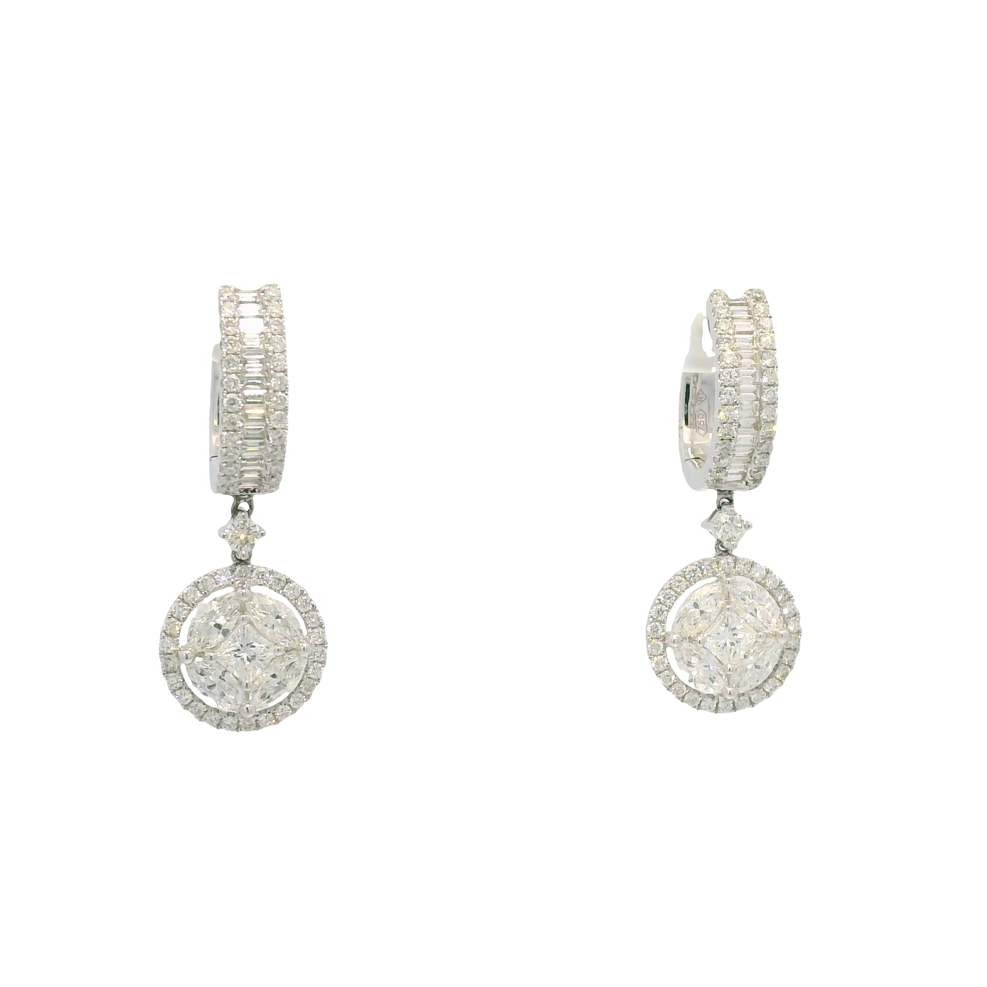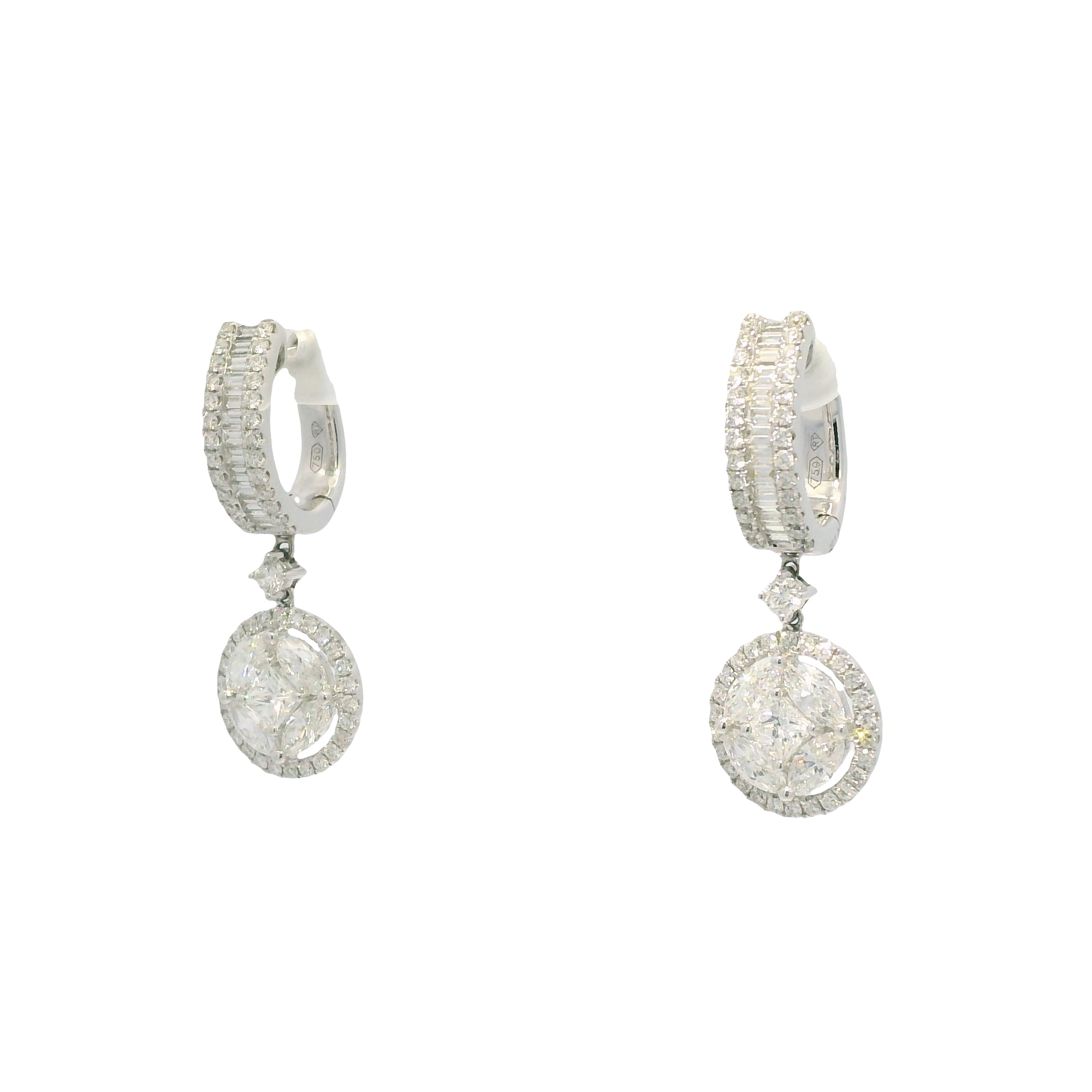 18k White Gold Natural 3.38 Carat Diamond Multi-Shape Mosaic Earrings