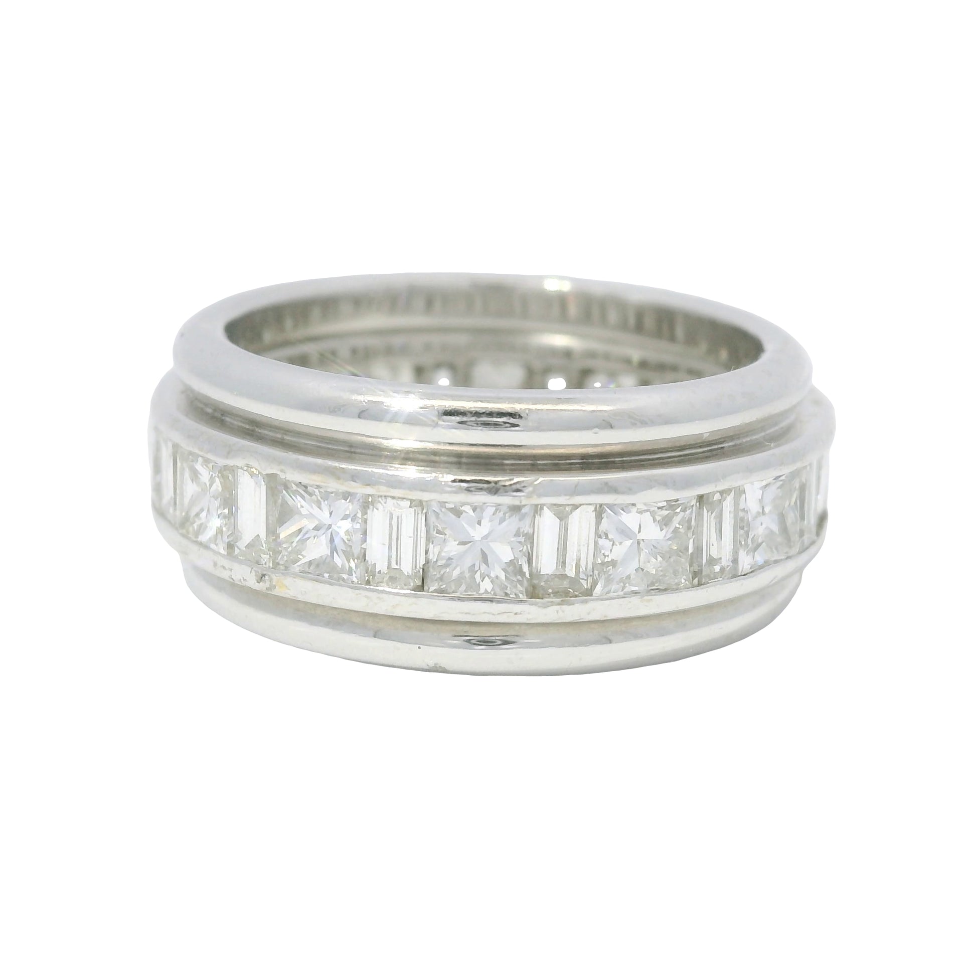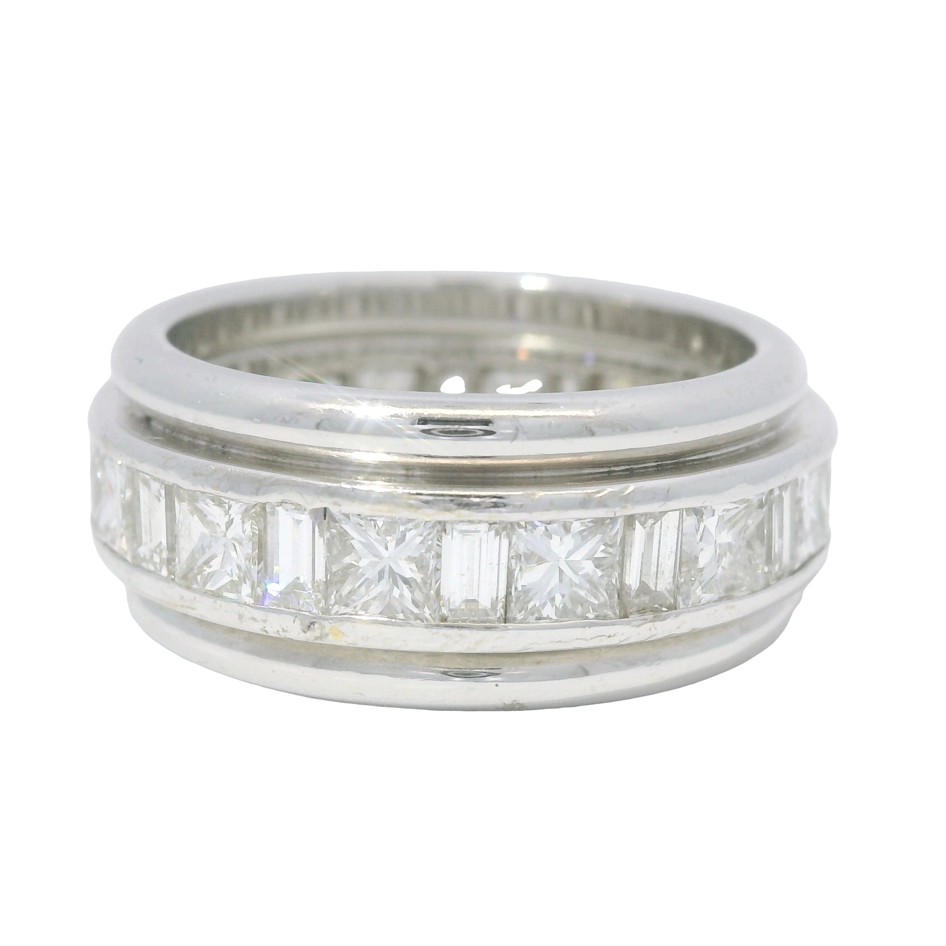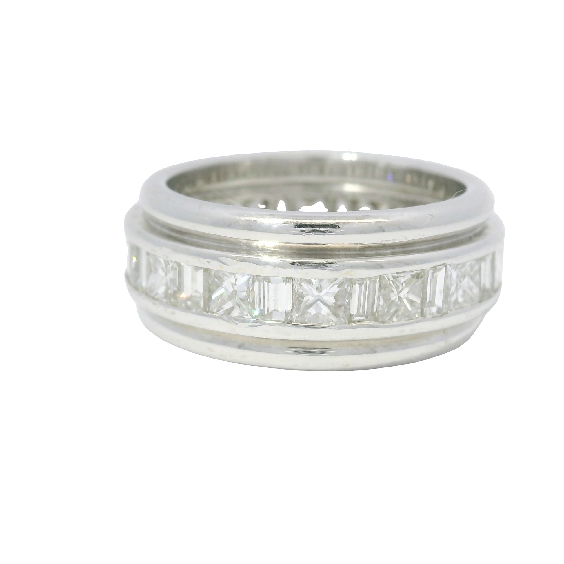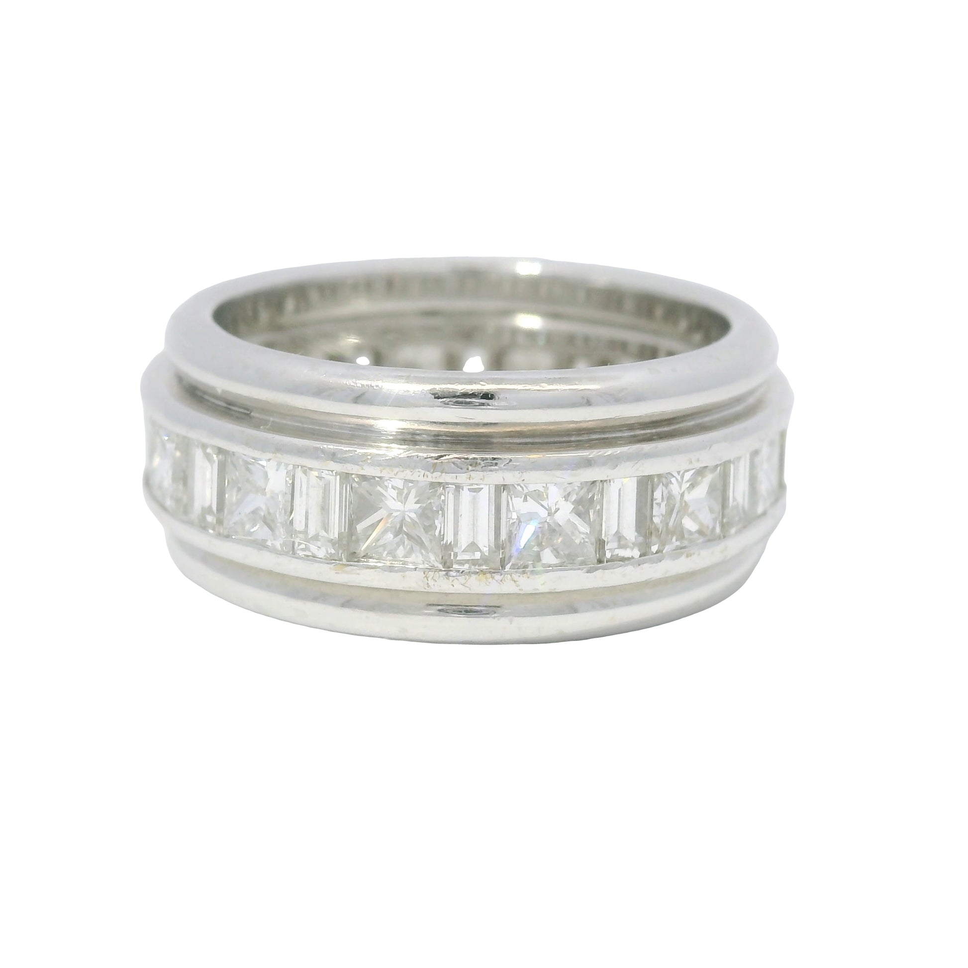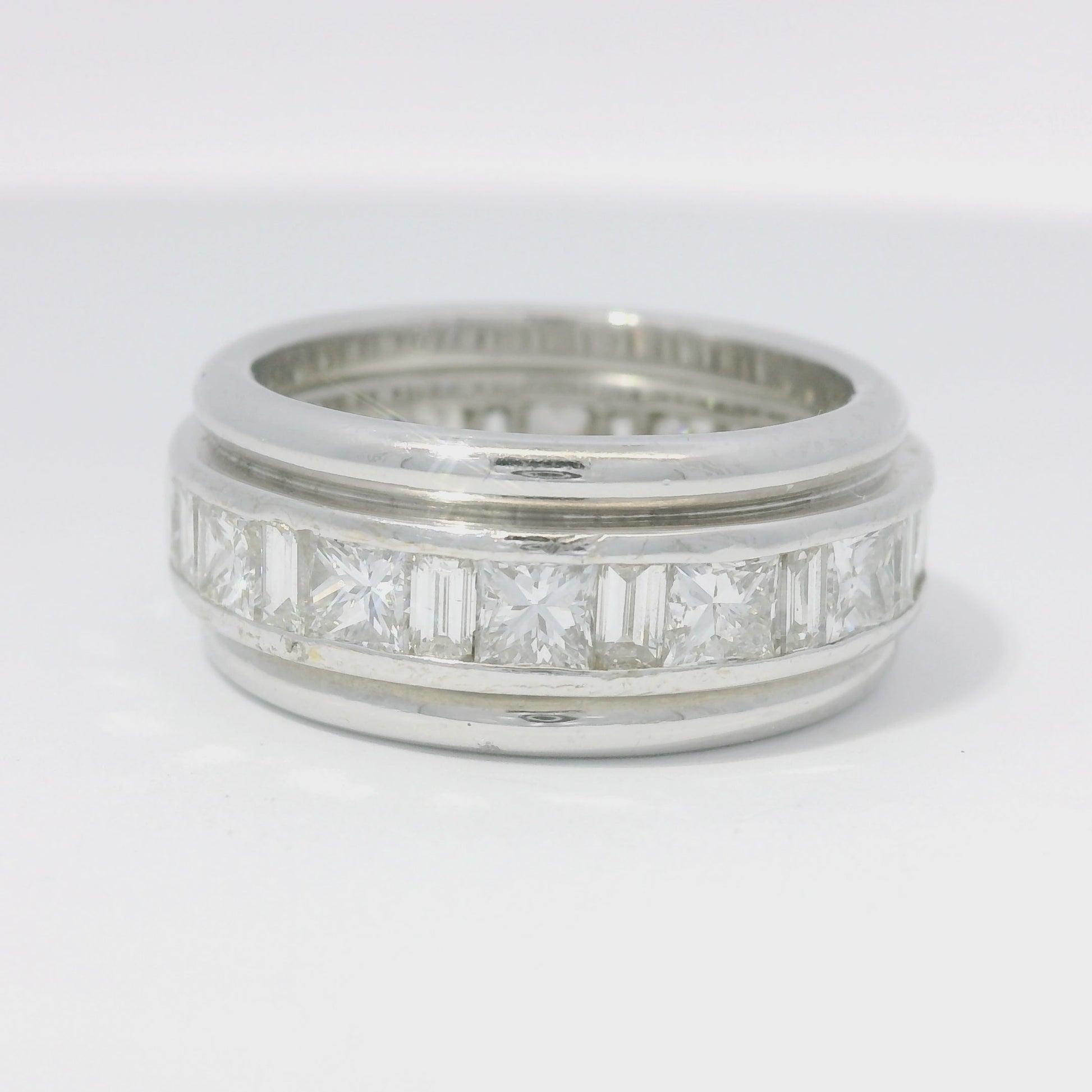 18k White Gold & Platinum Natural Emerald & Princess Cut Diamond Eternity Ring