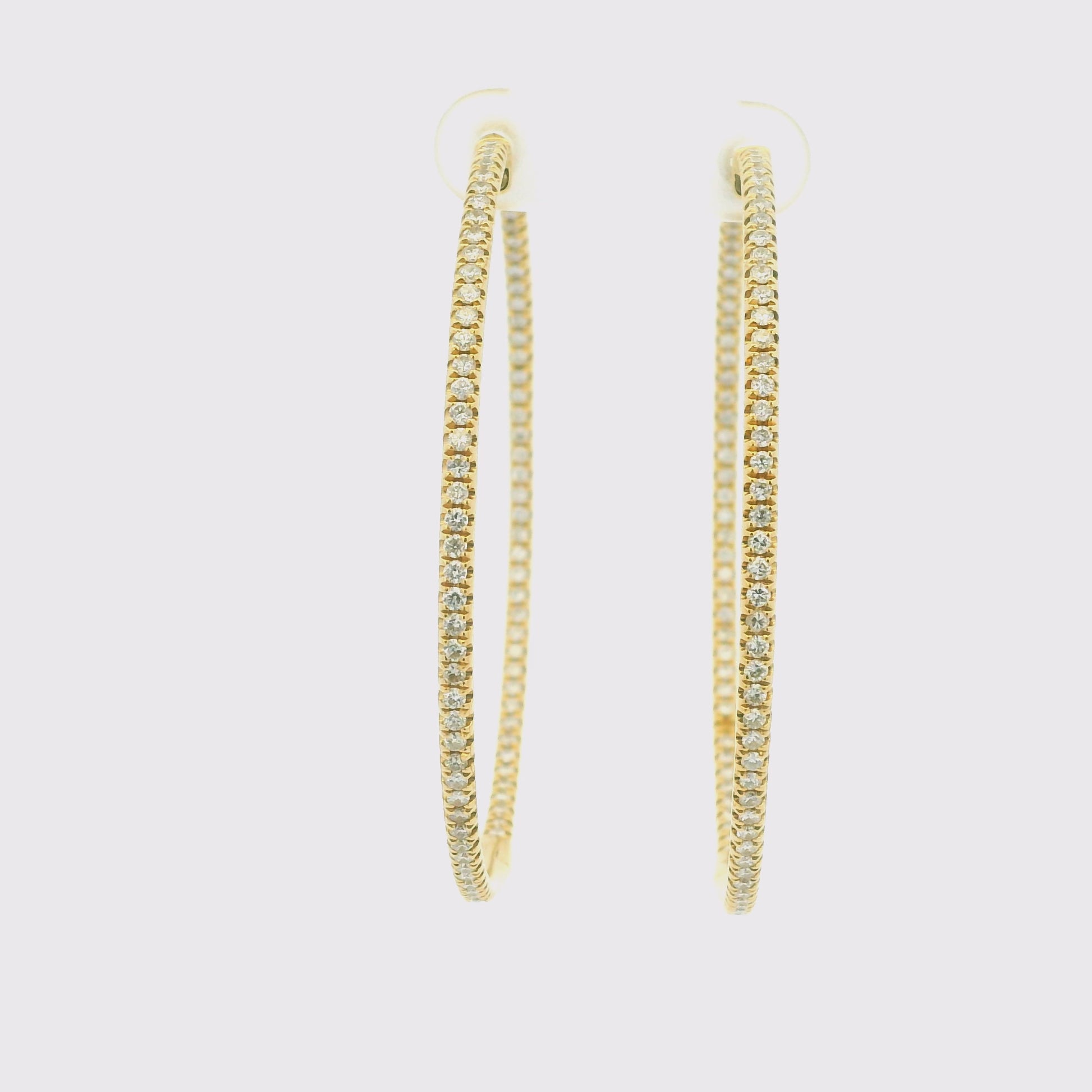 18k Yellow Gold Natural 1.92 Carat Round Brilliant Cut Diamond Large Hoop Earrings