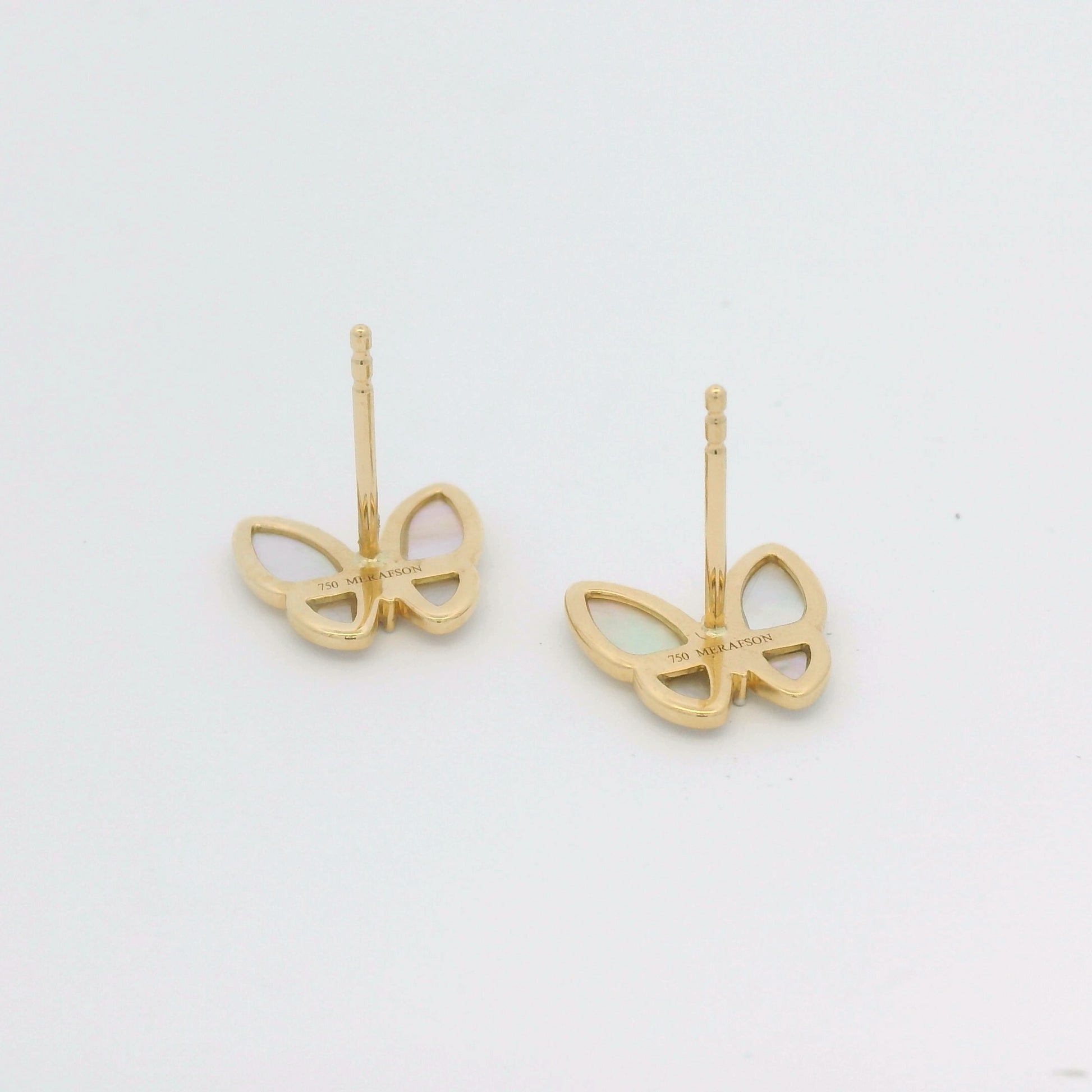 18k Yellow Gold White Mother of Pearl & Diamond Butterfly Stud Earrings