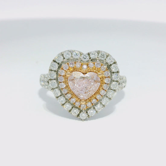 GIA 18k White Gold Natural Light Pink 1.03 Carat Heart Shaped Diamond Double Halo Ring