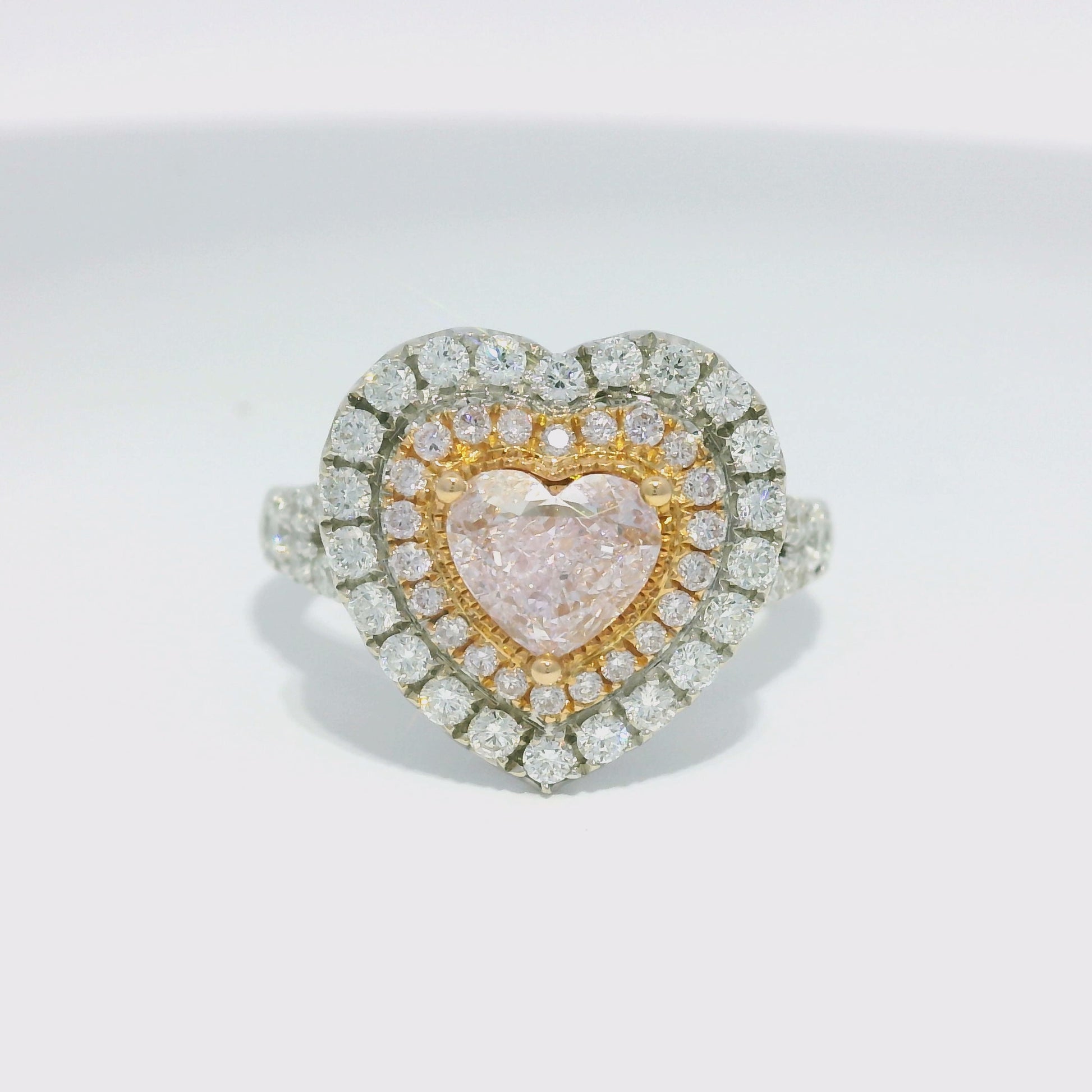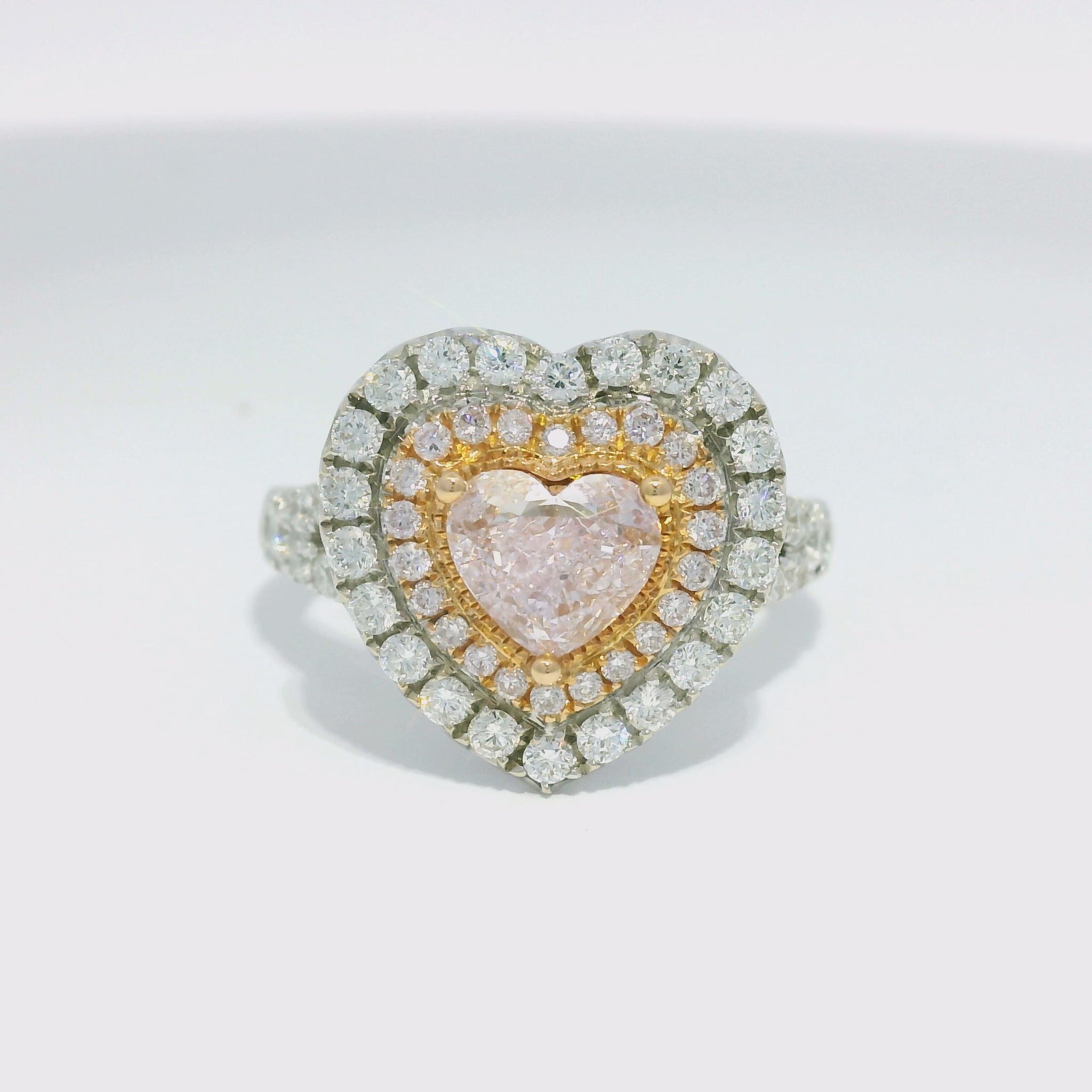 | Style | Natural Light Pink Heart Shaped Diamond Double Halo Ring |