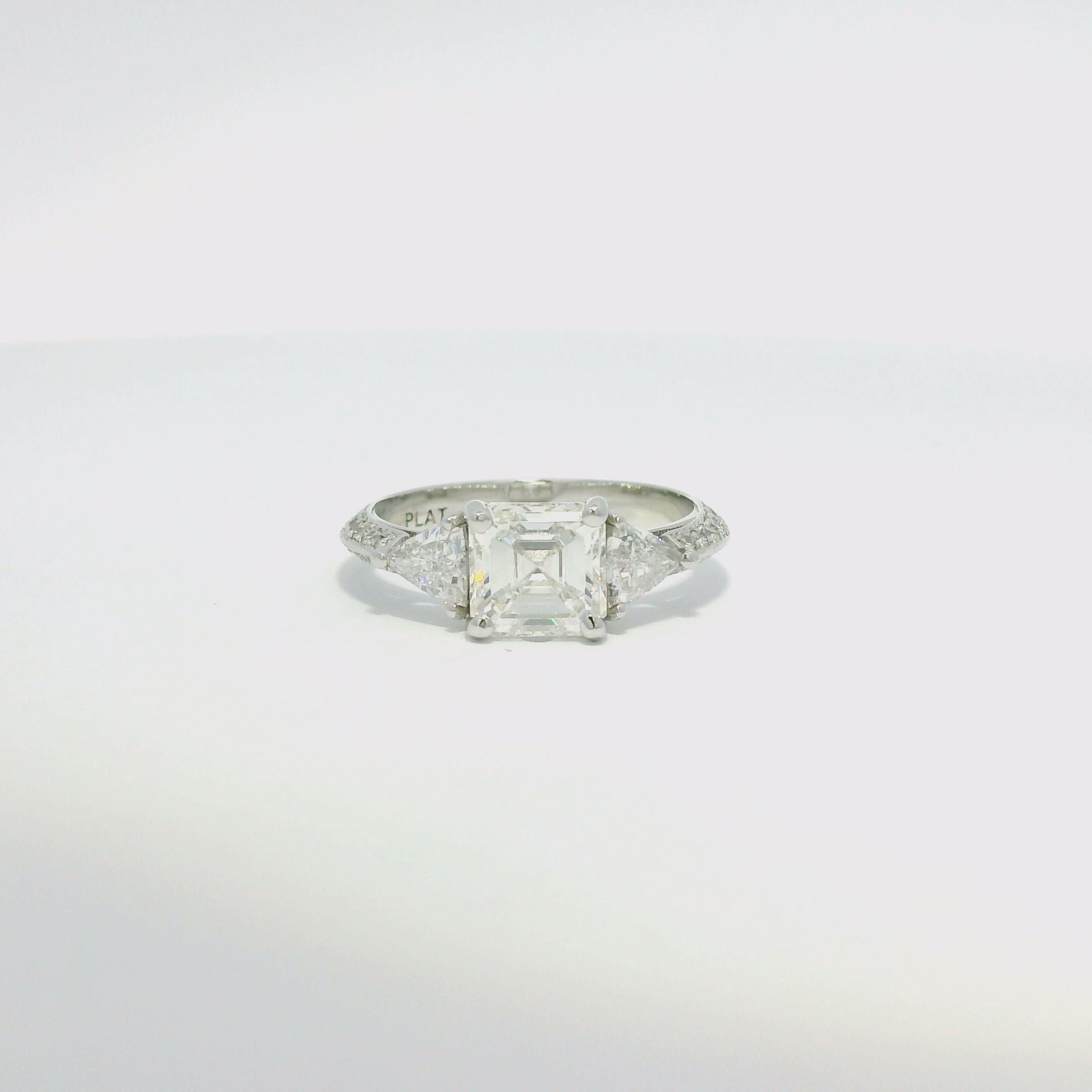 GIA Platinum Natural 1.50 Carat Emerald-Cut Diamond Engagement Ring