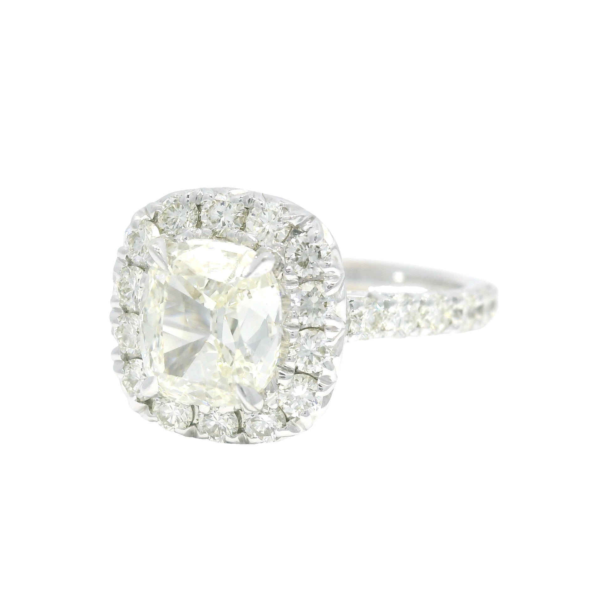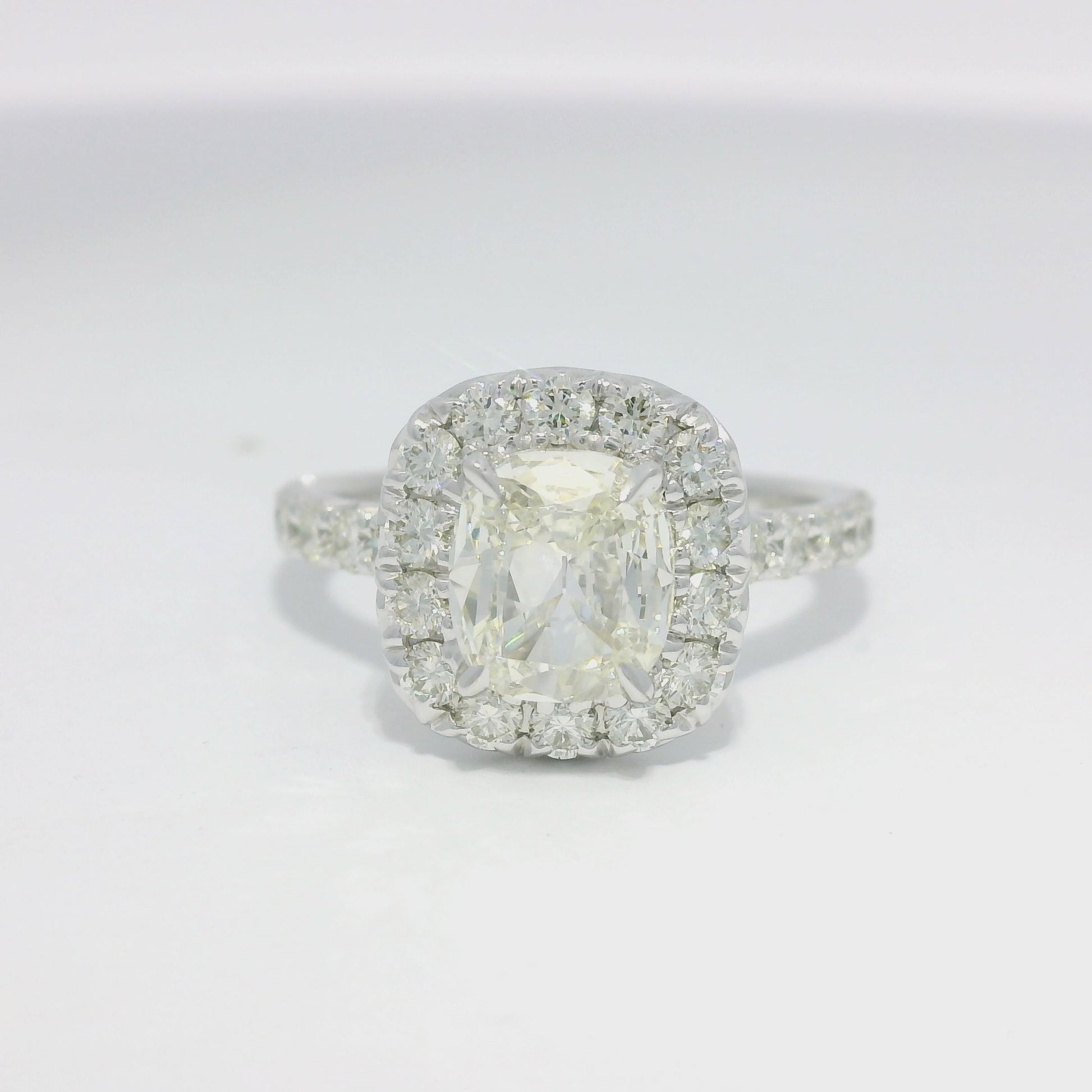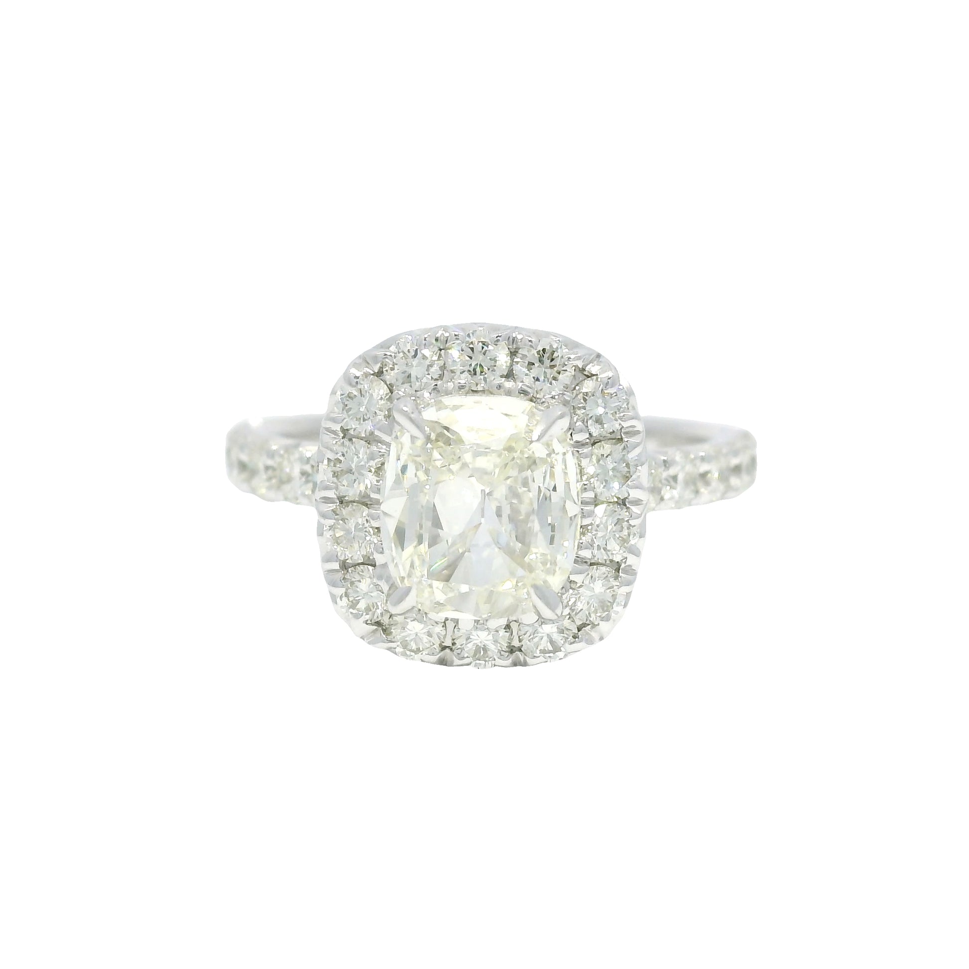 Henri Daussi 18k White Gold Natural Cushion Cut Diamond Halo Engagement Ring
