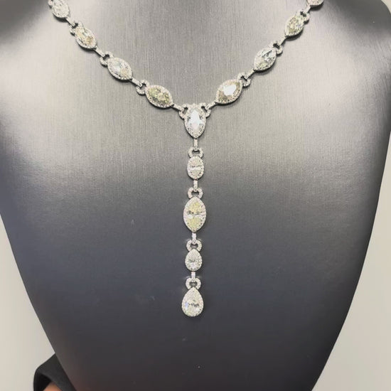 Platinum Natural Marquise & Pear Shape Diamond Lariat Necklace