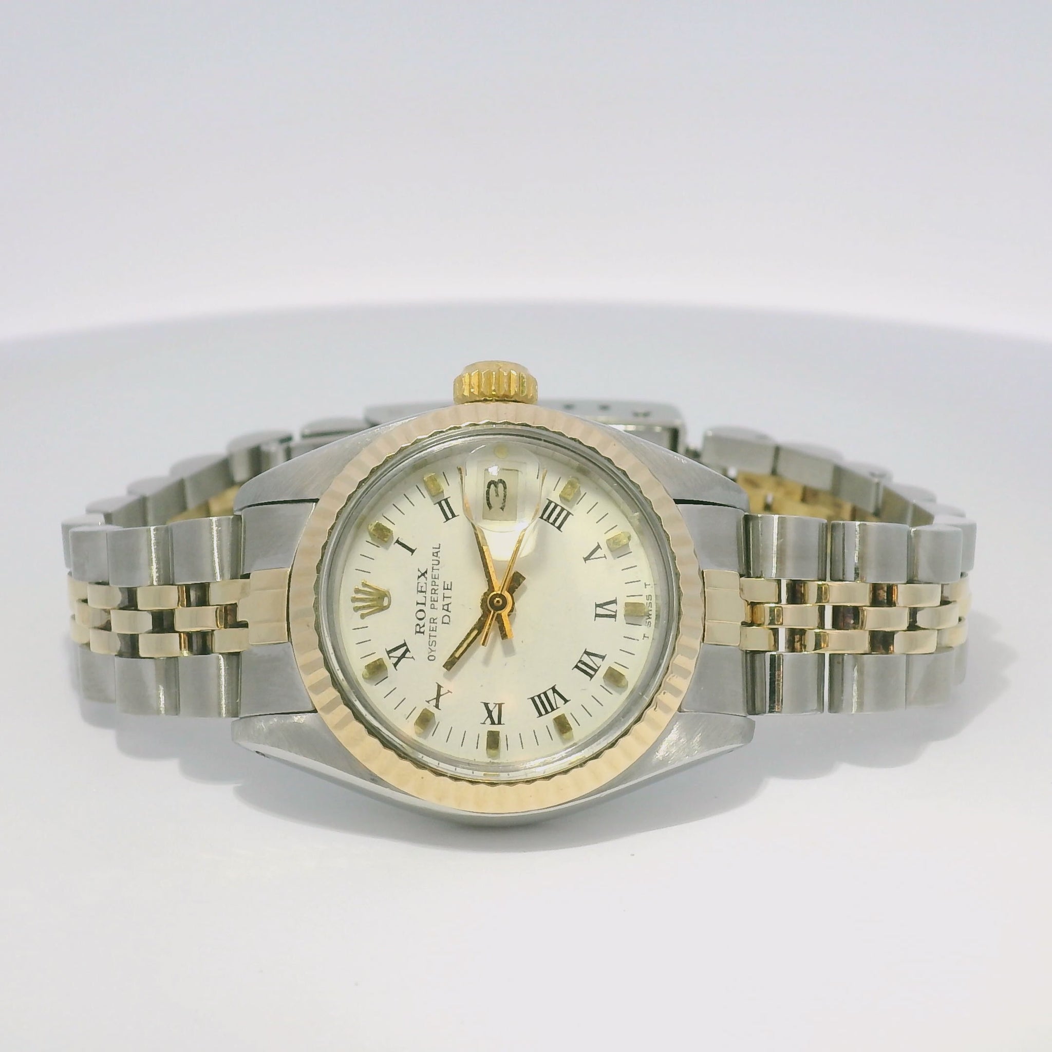 Rolex 6917 Date Two-Tone Champagne Roman Dial Fluted Bezel 26mm Watch